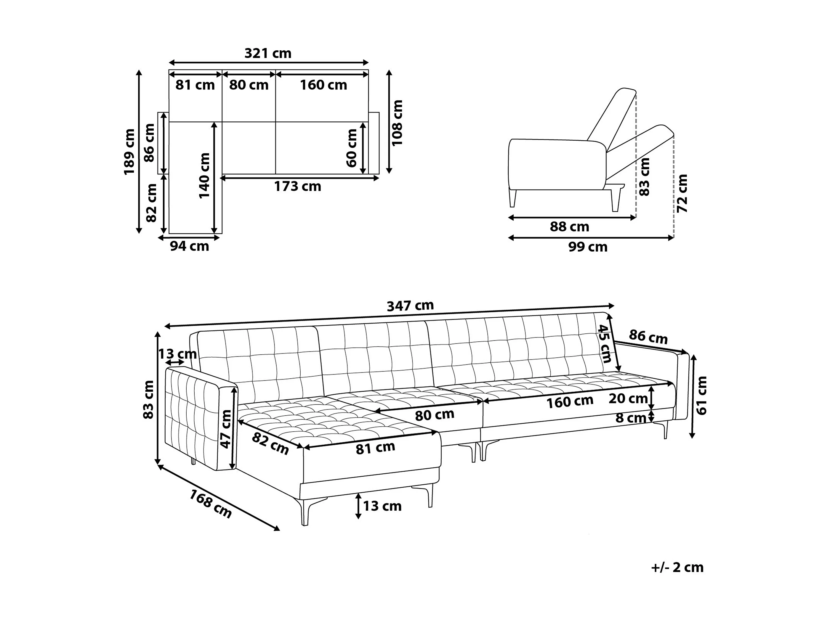 Divano letto angolare modulare ABERDEEN Velluto Verde 5 posti Lato destro