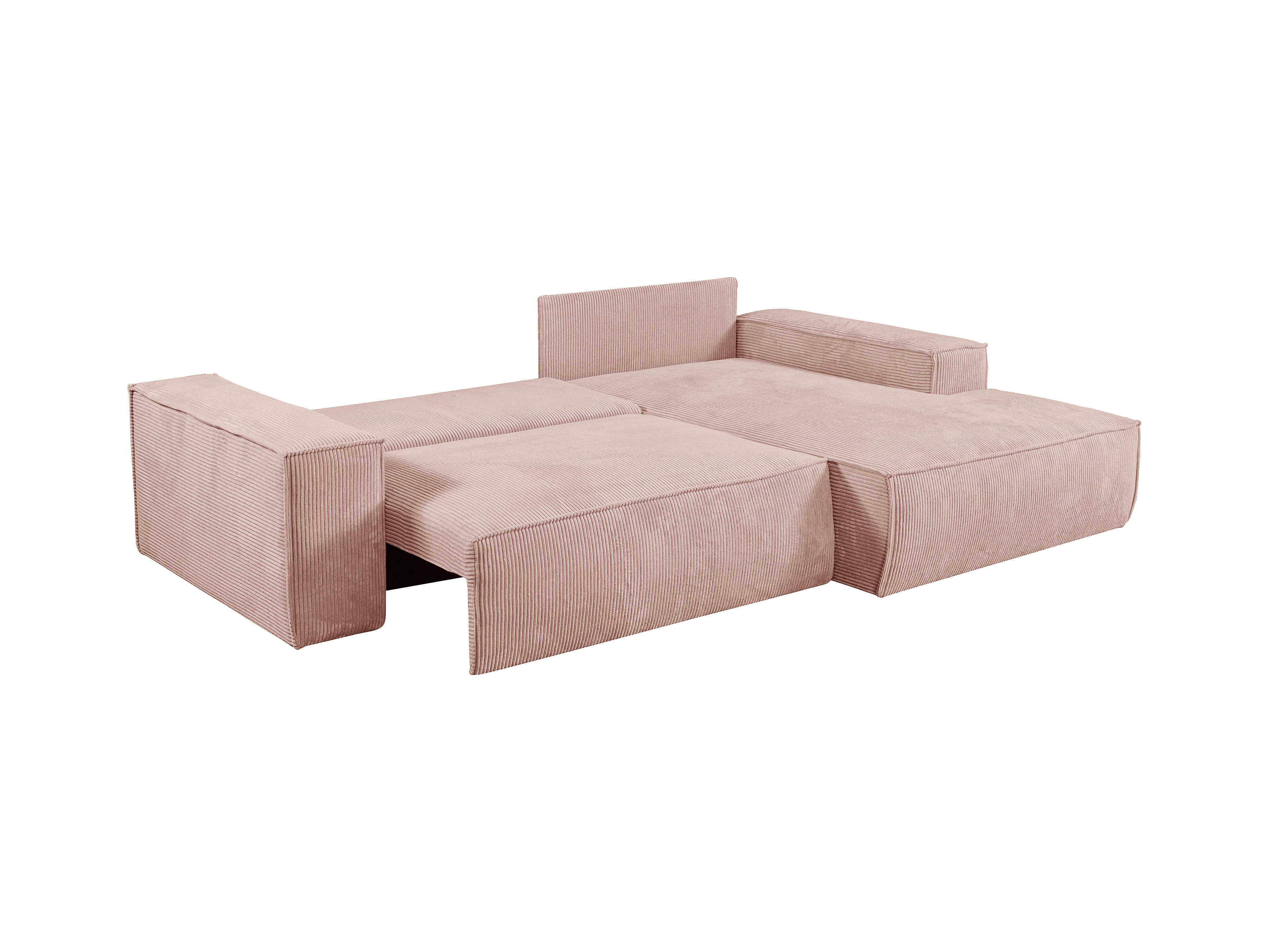 Divano letto angolo a destra in Velluto a coste Rosa cipria - AMELIA