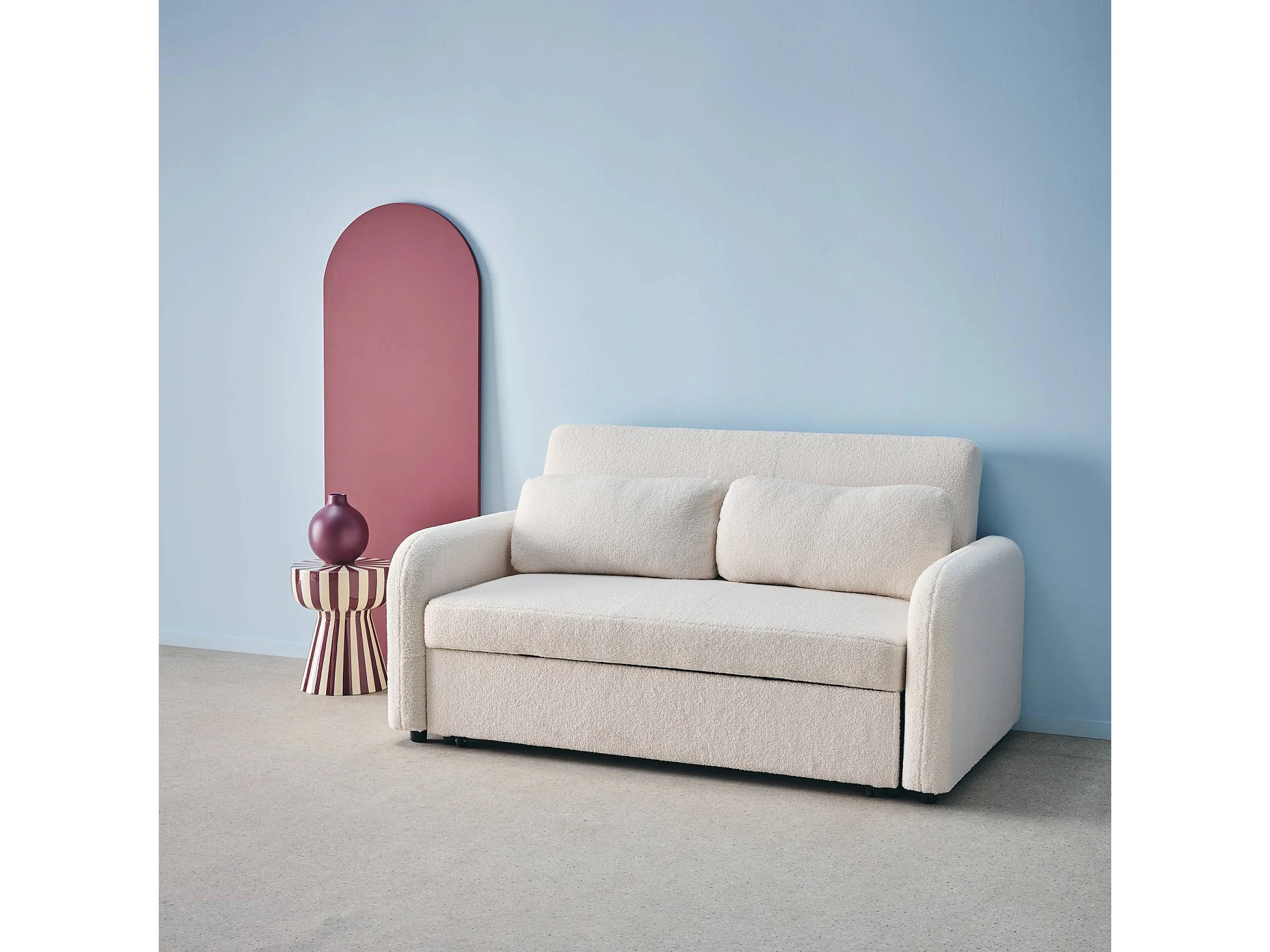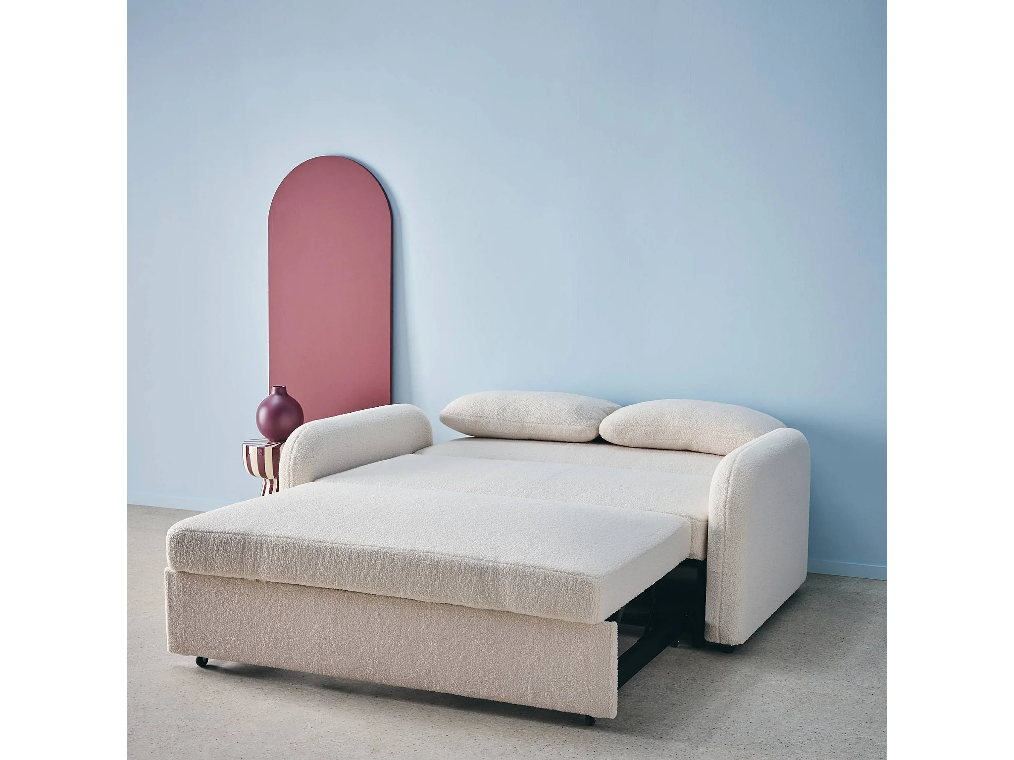 Divano letto arrotondato in tessuto bouclé, 2 posti, crema
