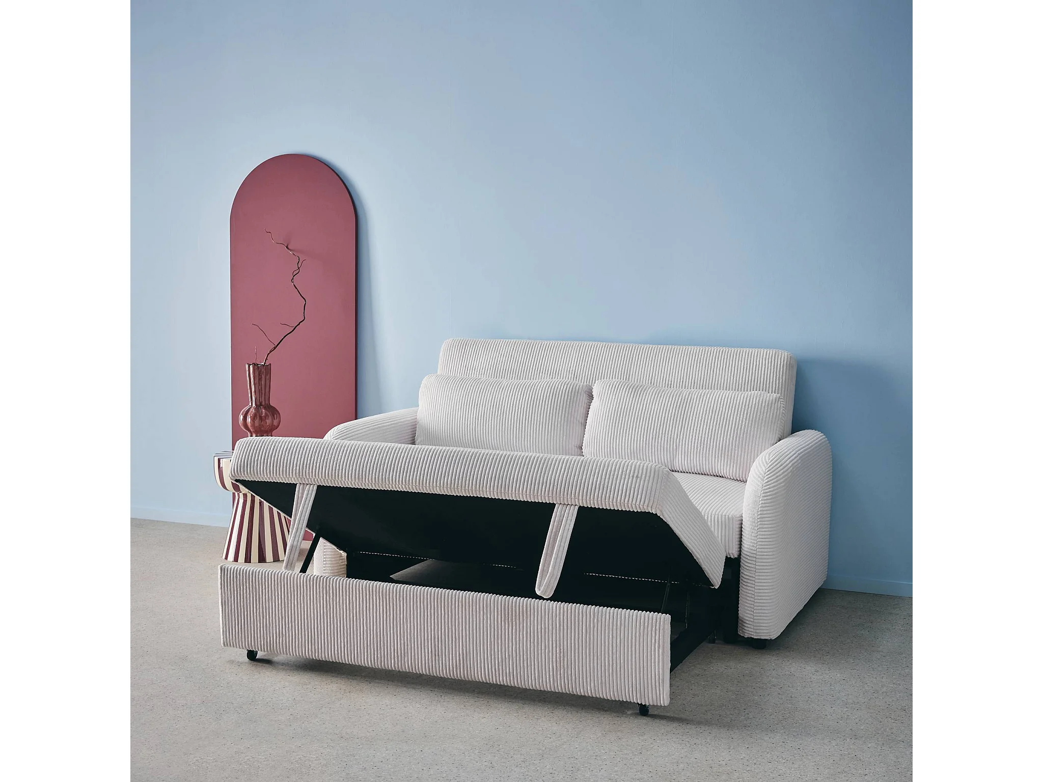 Divano letto arrotondato in velluto a coste, 2 posti, bianco