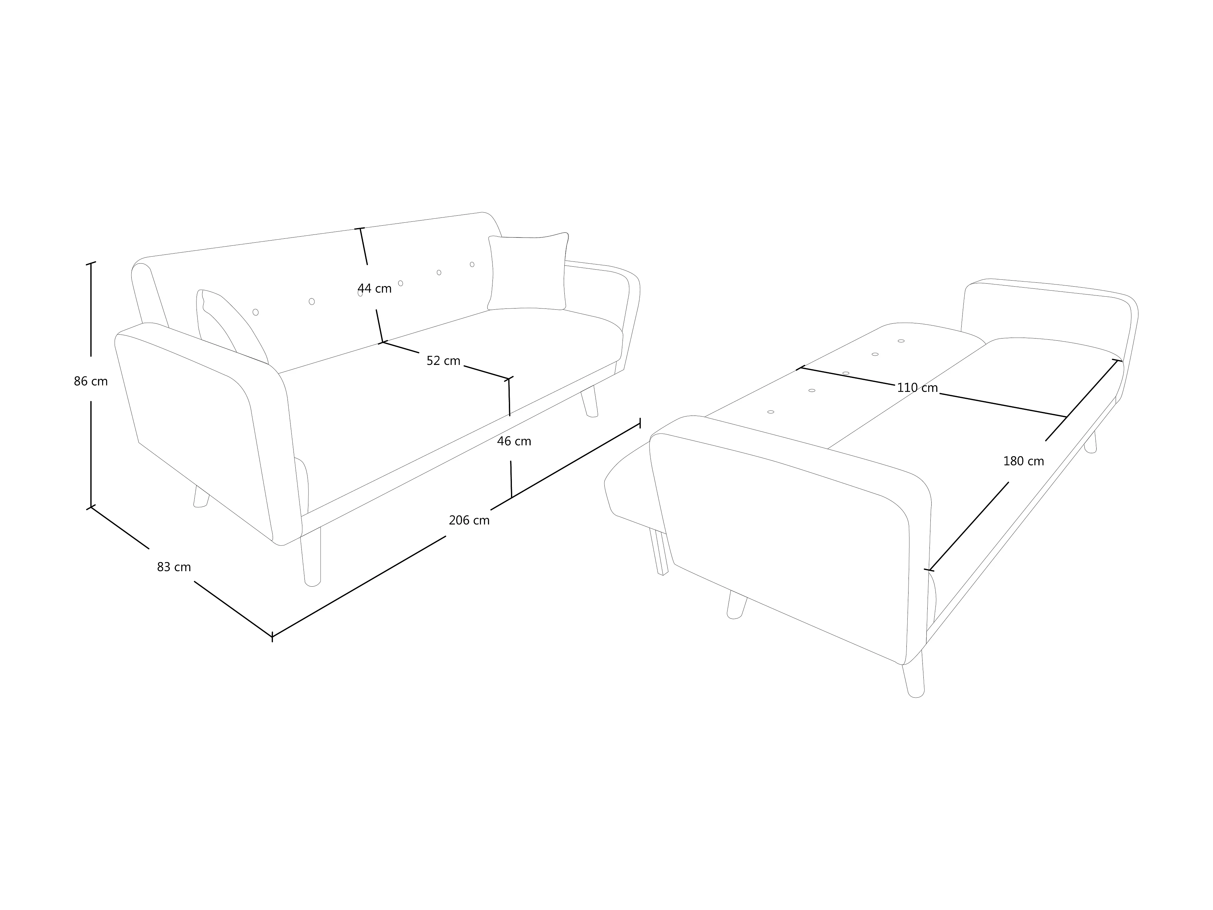 Divano letto clic clac in tessuto grigio, divano 3 posti mod. Henry
