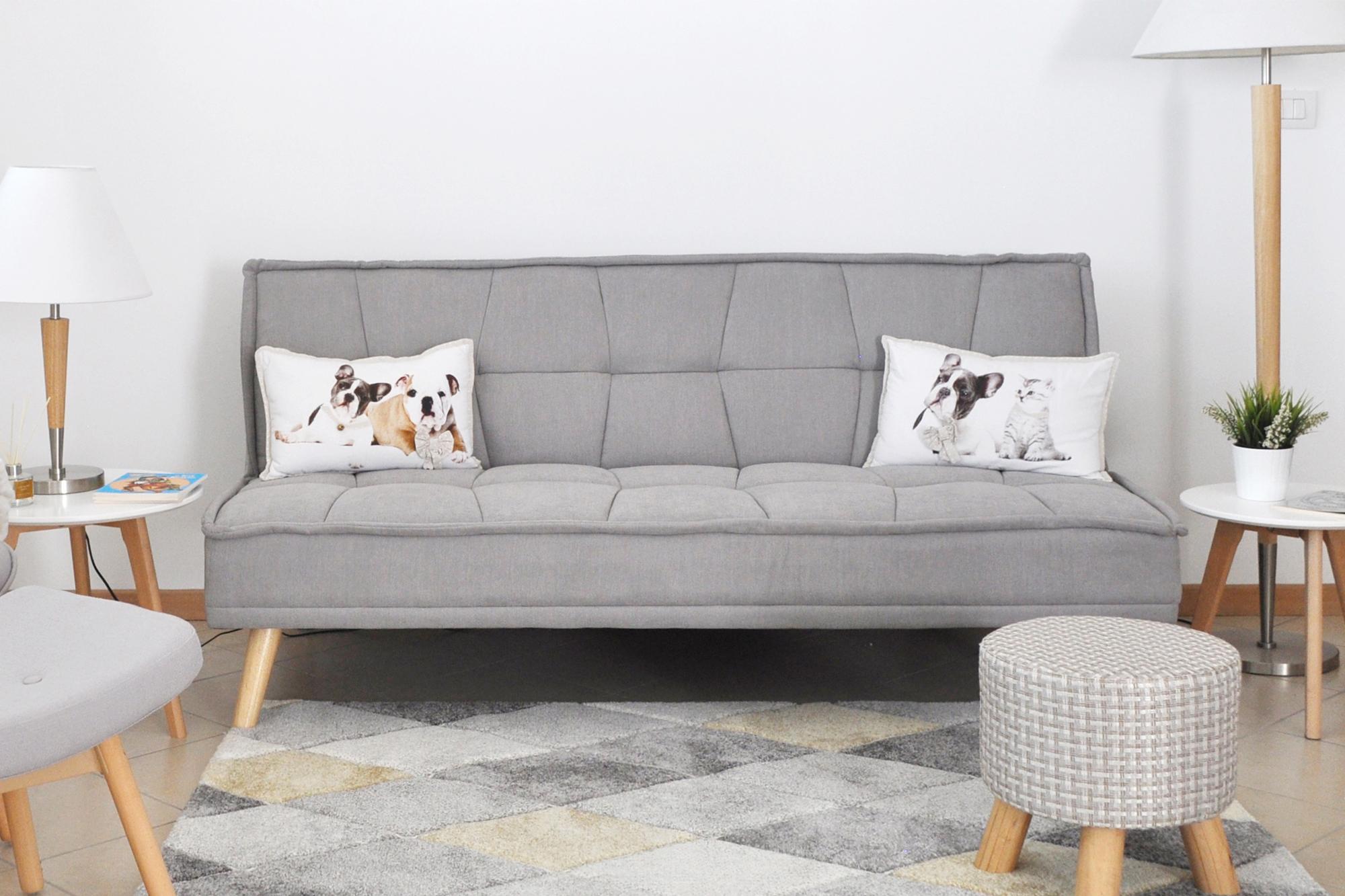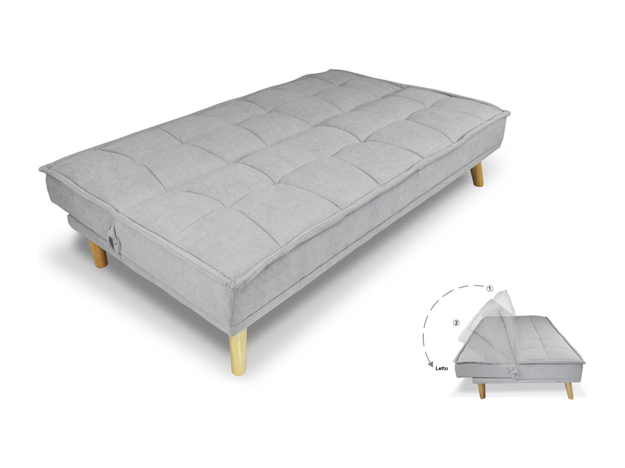 Divano letto clic clac in tessuto vellutato grigio, divano 3 posti mod. Bart