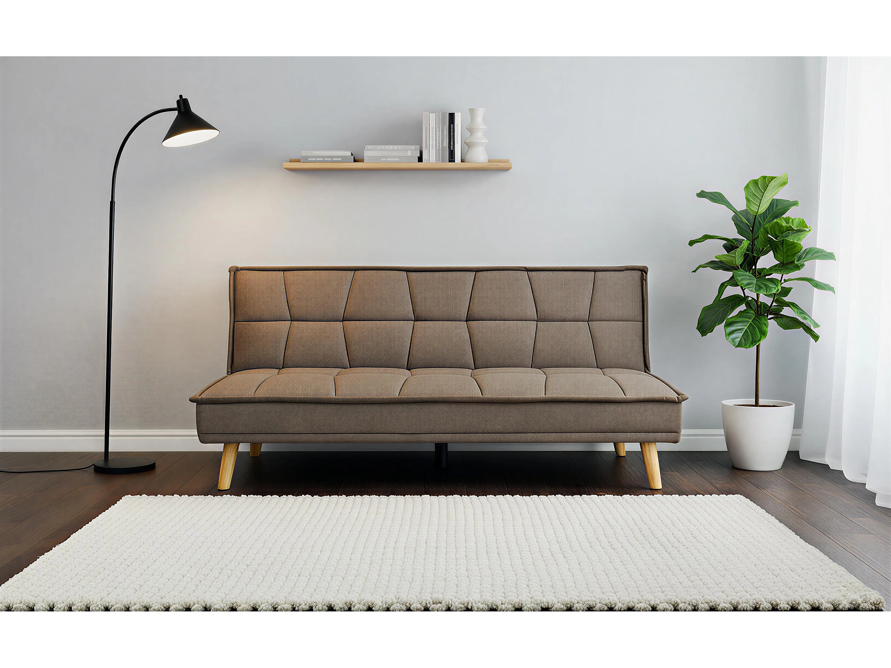 Divano letto clic clac in tessuto vellutato marrone, divano 3 posti mod. Bart
