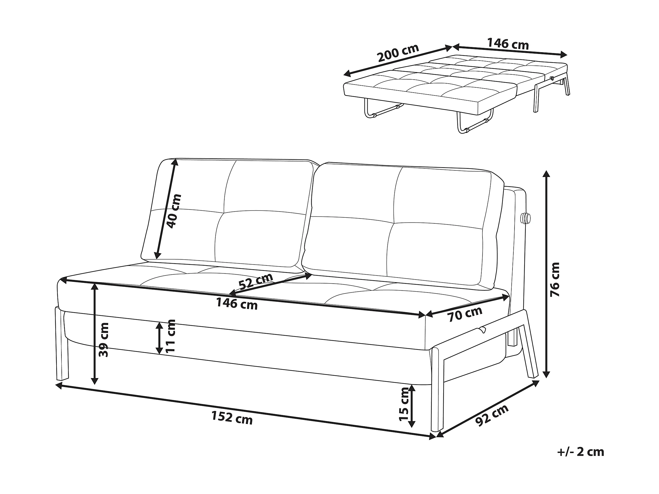 Divano letto EDLAND Tessuto Grigio chiaro 2 posti