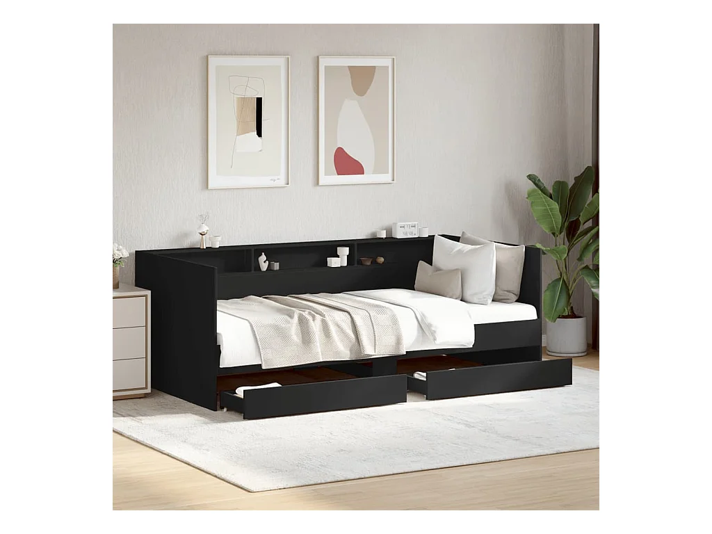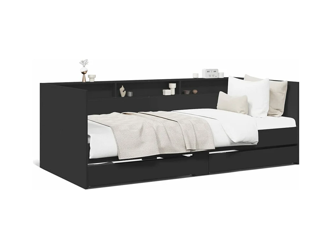 Divano Letto con Cassetti senza Materasso Nero 75x190 cm