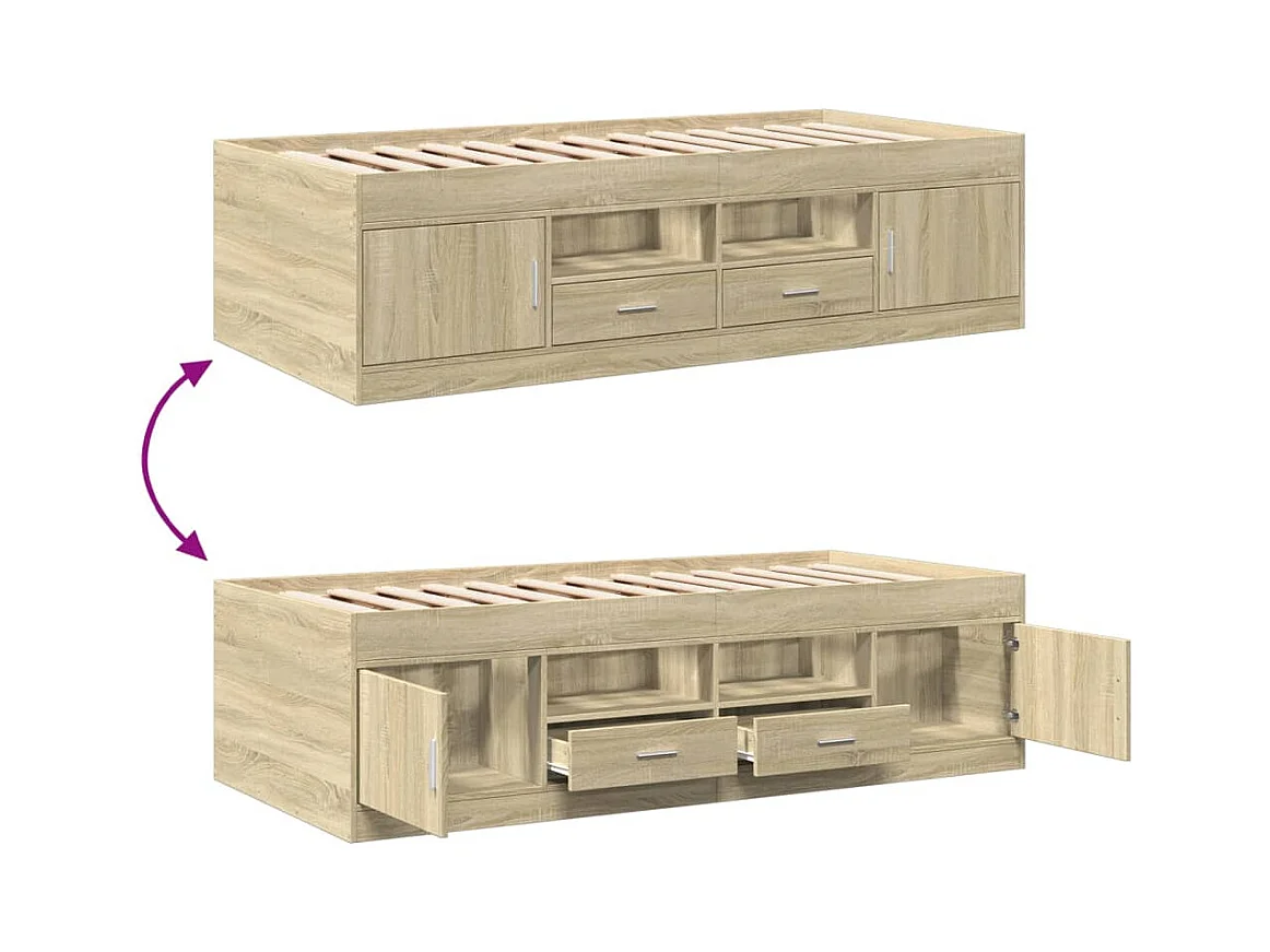 Divano letto con cassetti senza materasso rovere sonoma 75x190 cm