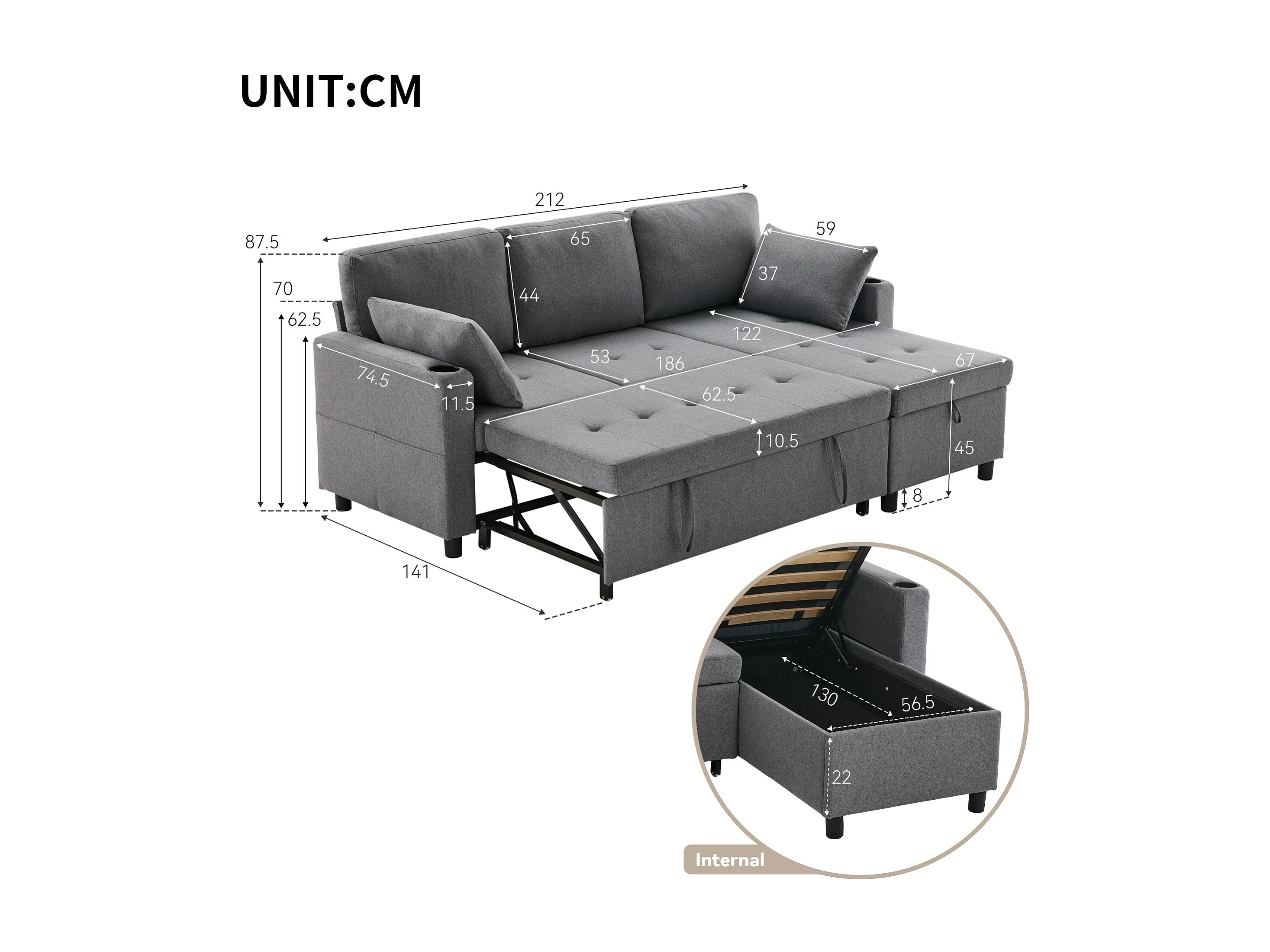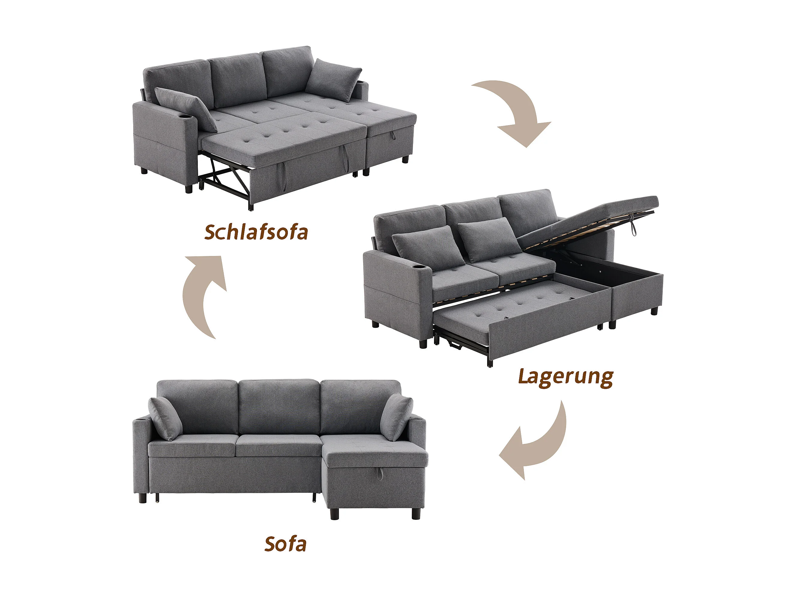 Divano letto con funzione letto e contenitore, Divano a L, Mobili imbottiti dal design moderno, Divani e poltrone