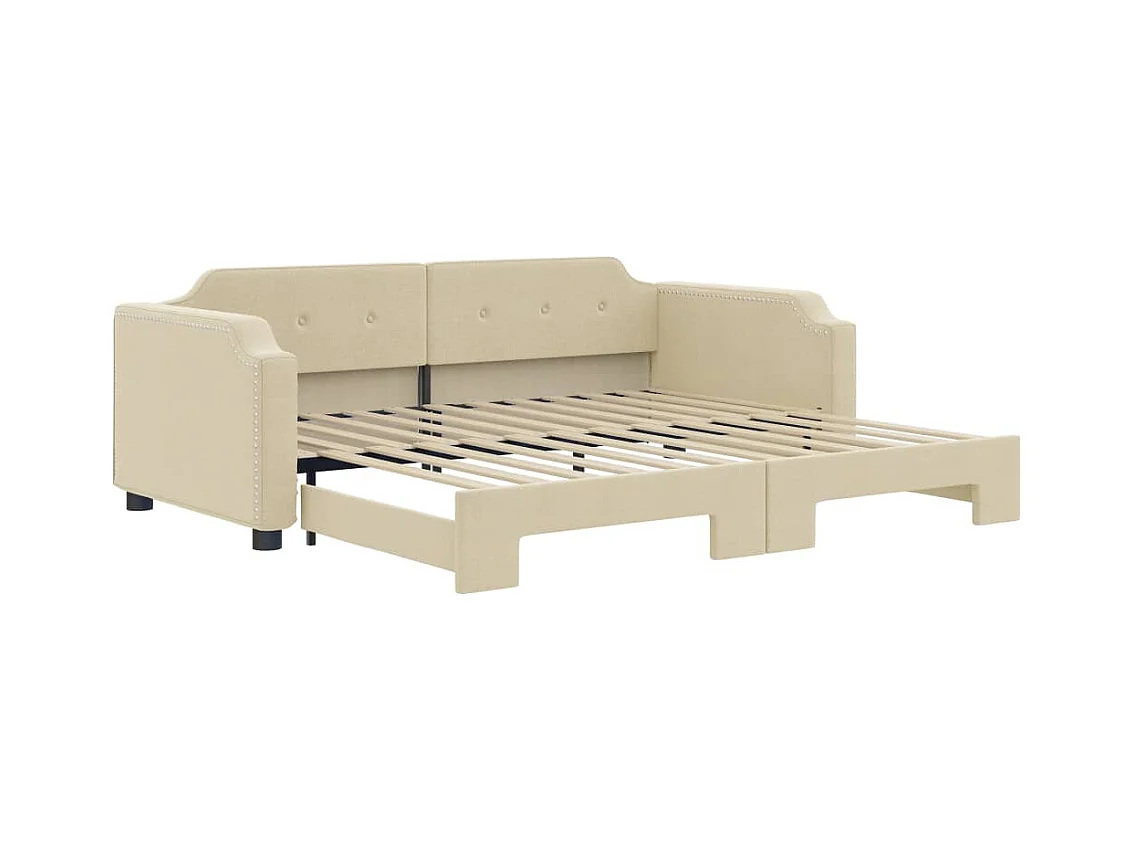 Divano letto con rotelle e cassetti in tessuto crema 100x200 cm