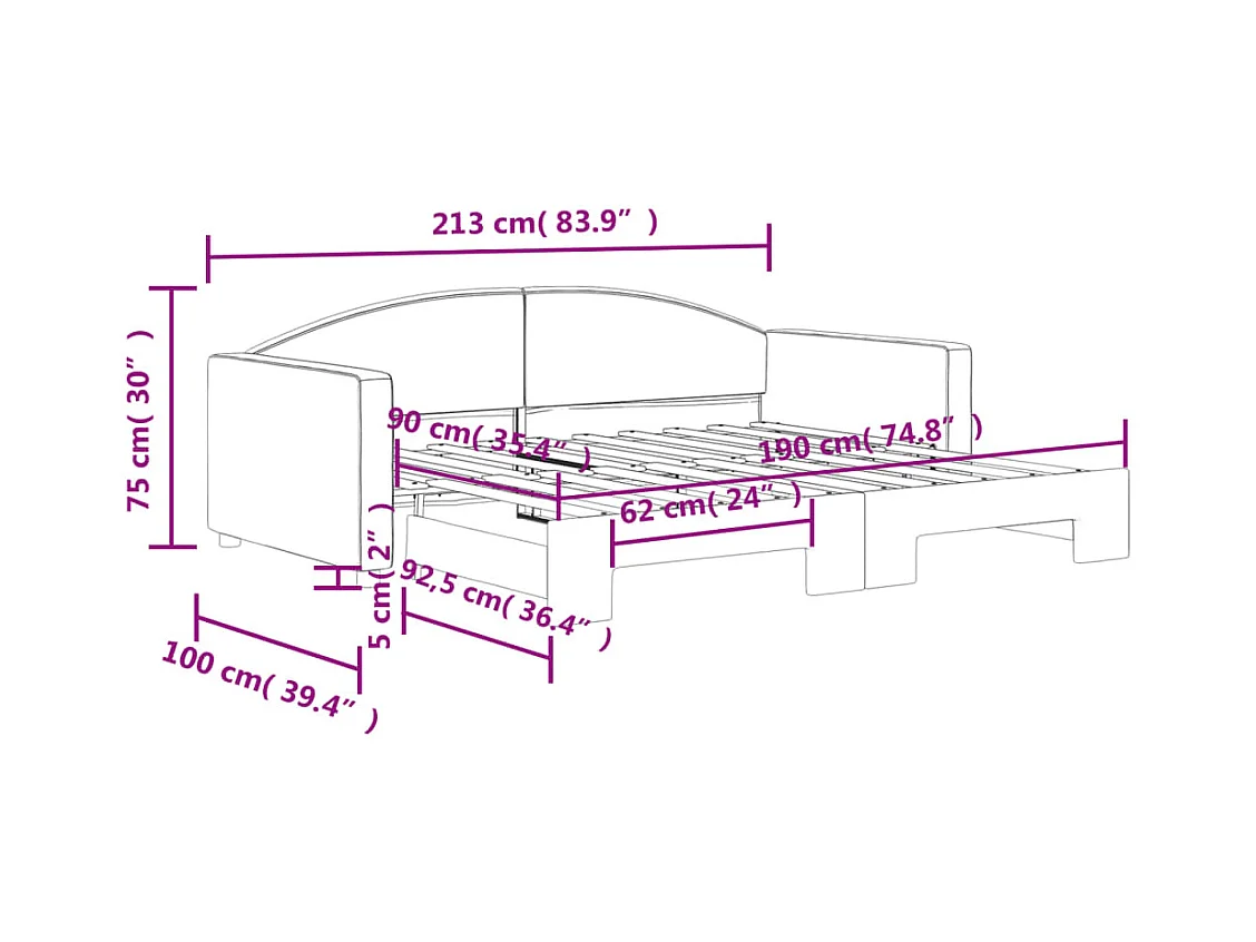 Divano Letto Estraibile con Cassetti Nero 90x190 cm in Tessuto
