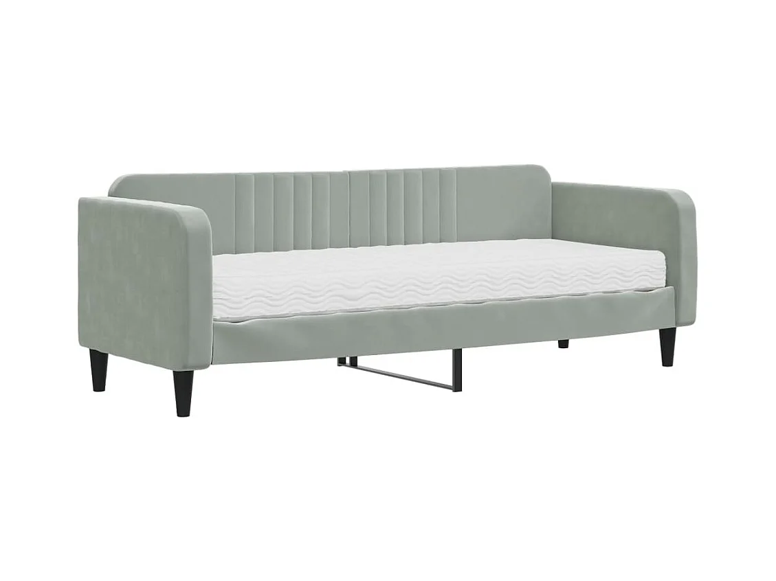 Divano letto con materasso in velluto grigio chiaro 80x200 cm