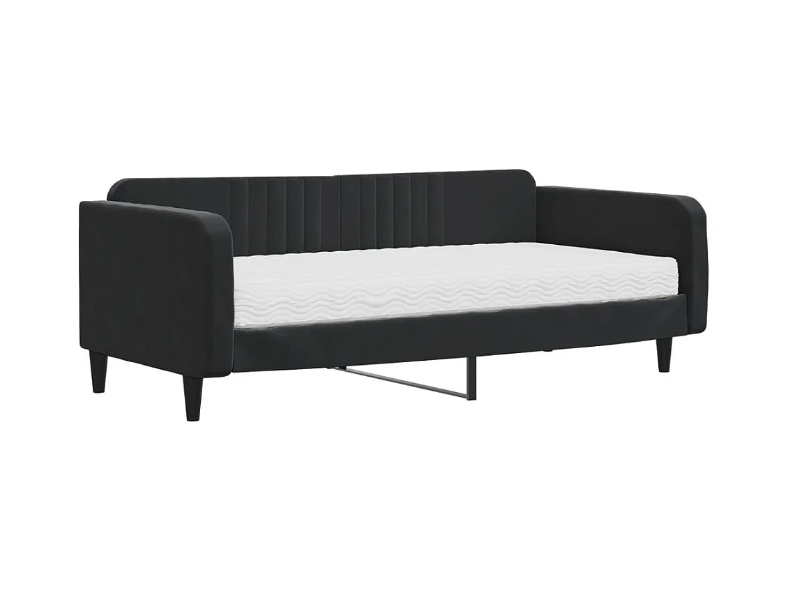 Divano letto con materasso in velluto nero 100x200 cm