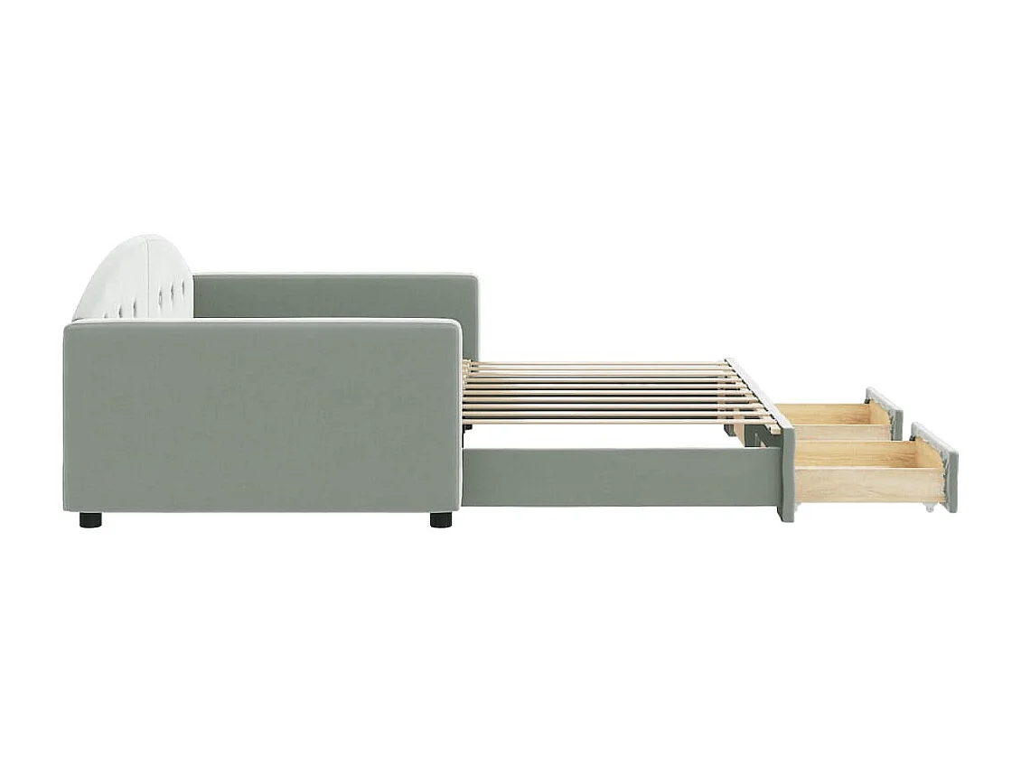 Divano letto con rotelle e cassetti grigio chiaro 90x190cm velluto