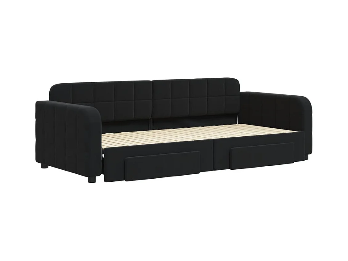 Divano letto con rotelle e cassetti senza materasso nero 90x200 cm