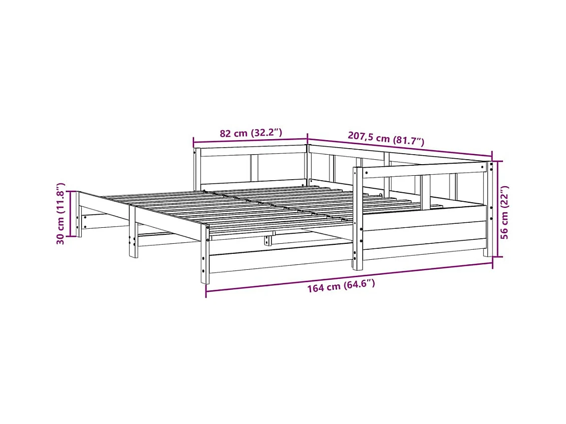 Dormeuse senza Materasso Bianca 80x200 cm Legno Massello Pino