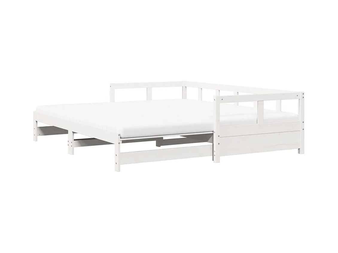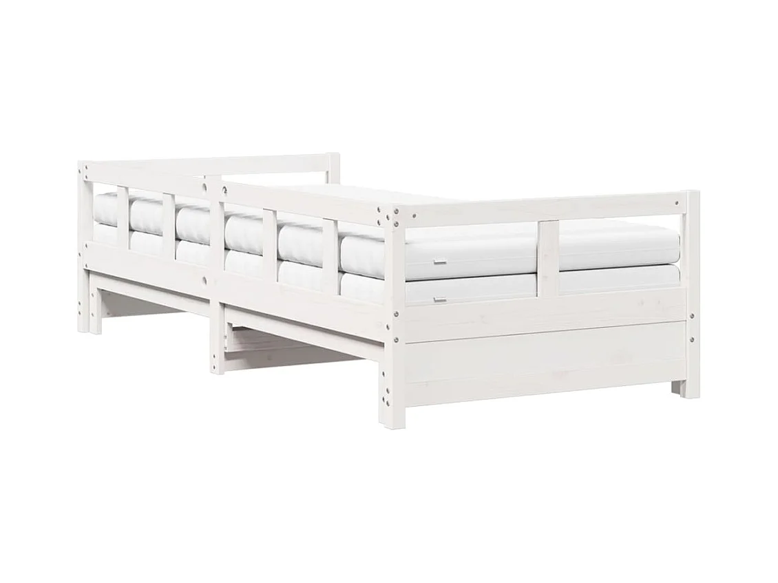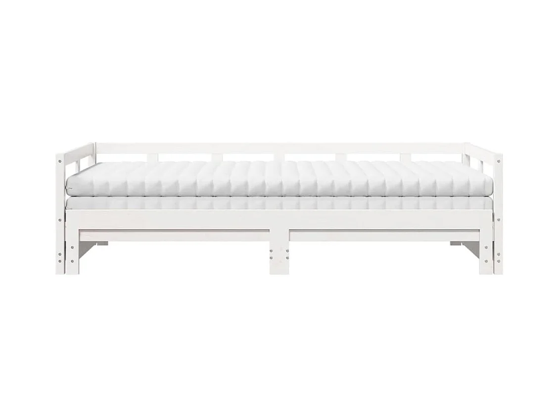 Divano Letto con Rotelle e Materasso Bianco 80x200 cm in Pino