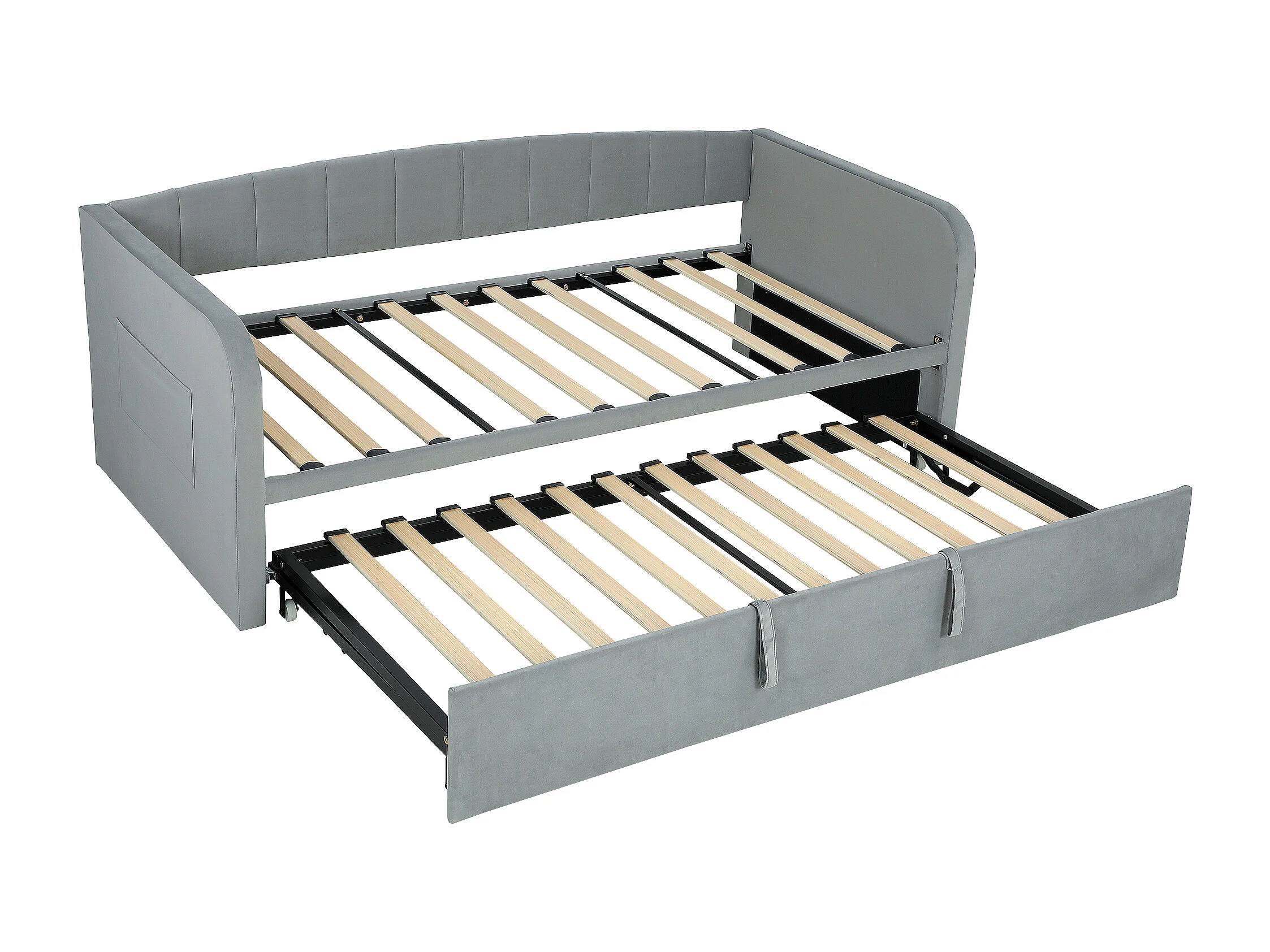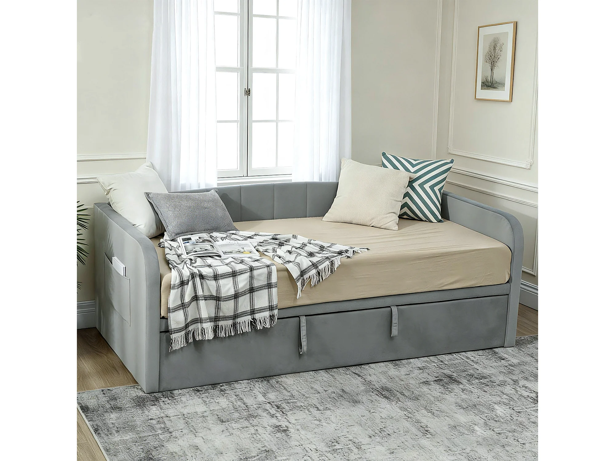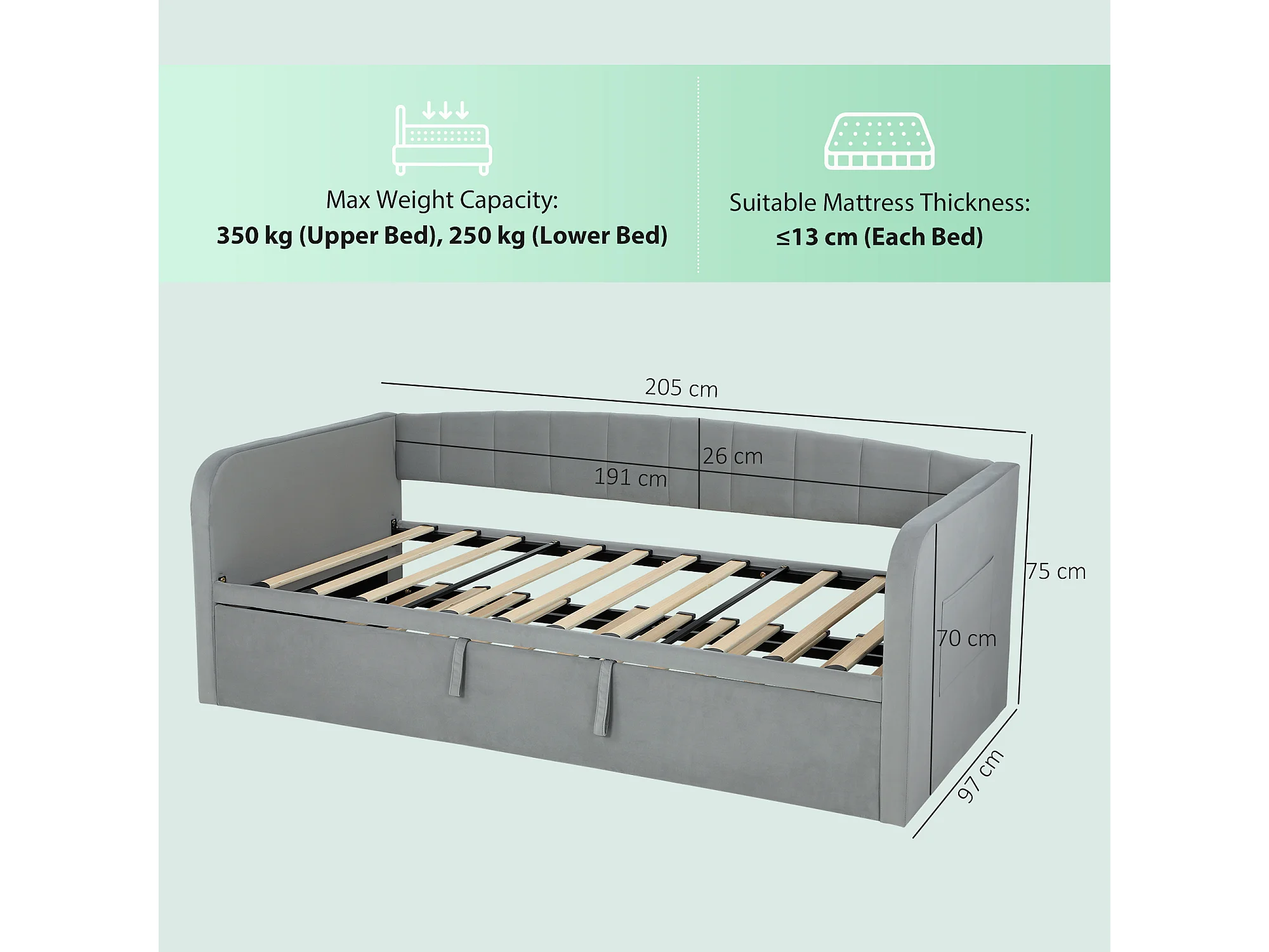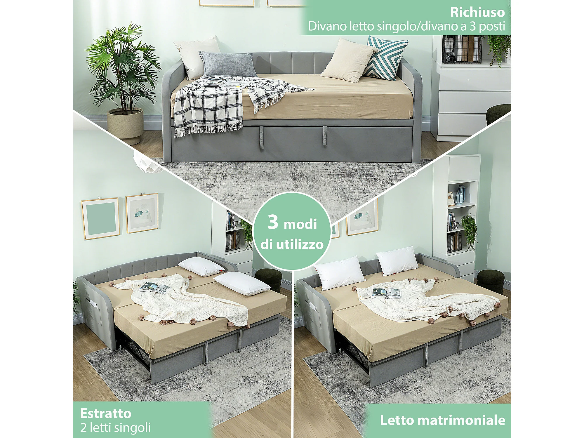Divano letto con secondo letto estraibile matrimoniale grigio chiaro