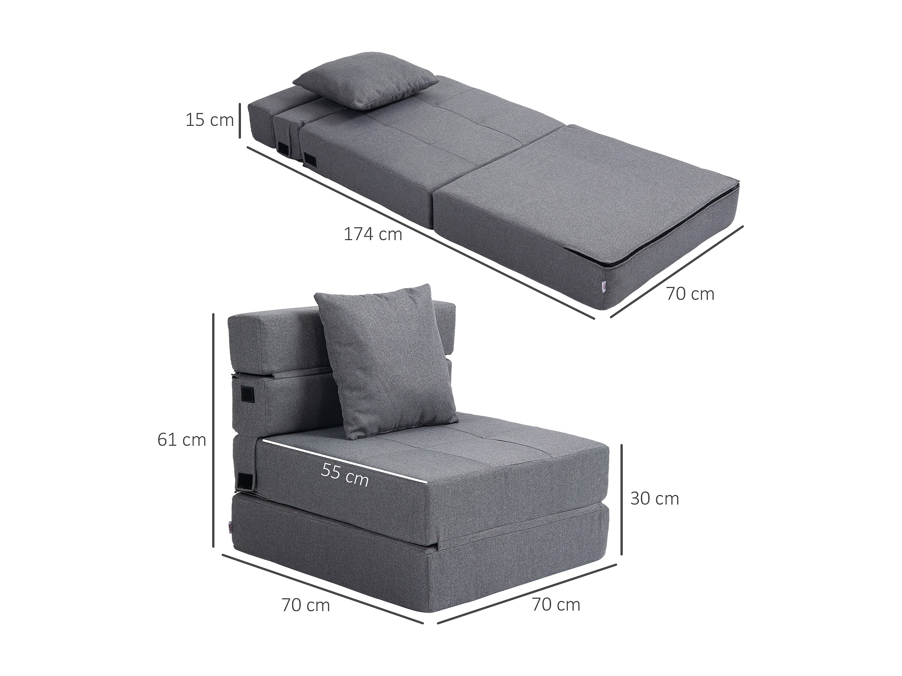 Divano letto convertibile pieghevole in poliestere con divano letto per salone camera da letto 70x70 cm grigio foncé