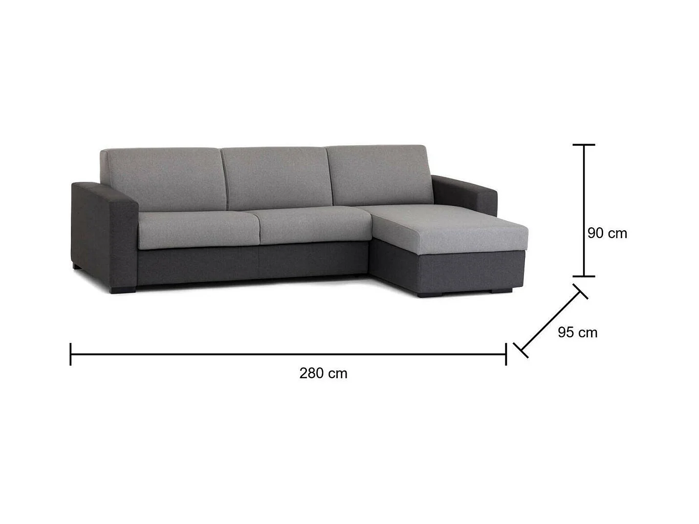 Talamo Italia - Divano letto con penisola Aika, Cm 280x95h90, Grigio e Antracite