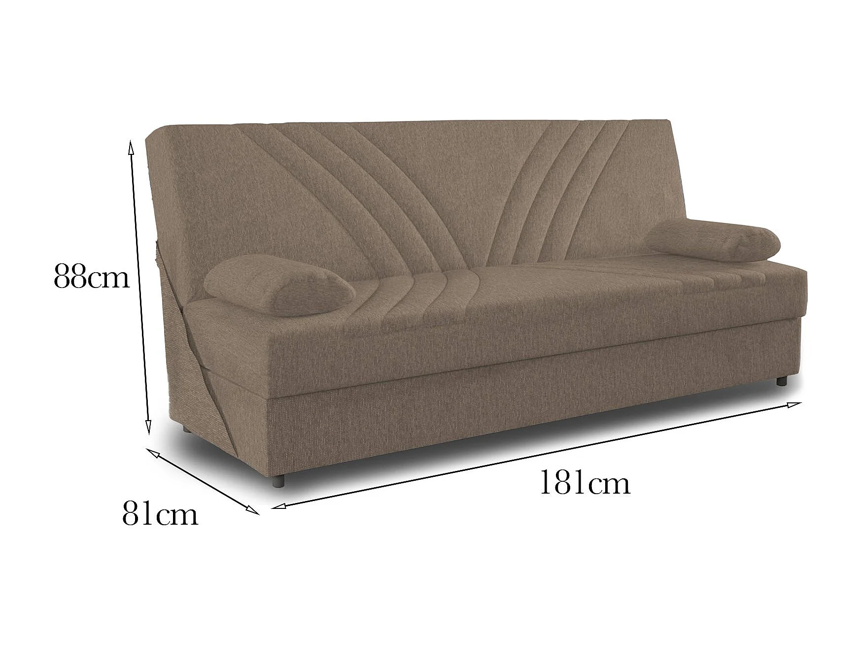 Divano Letto 3 Posti Apicella, Contenitore, 81x181 cm Nero