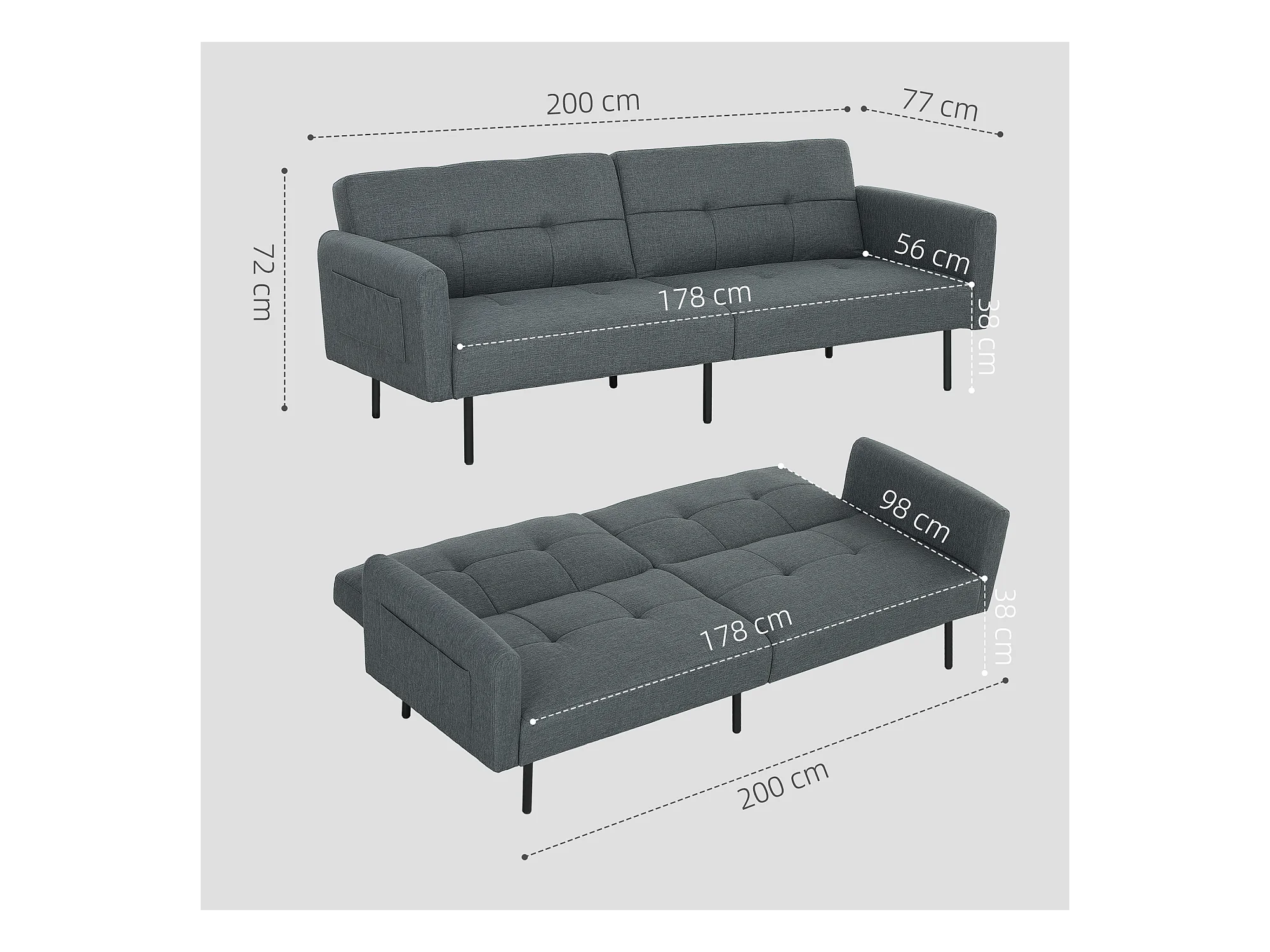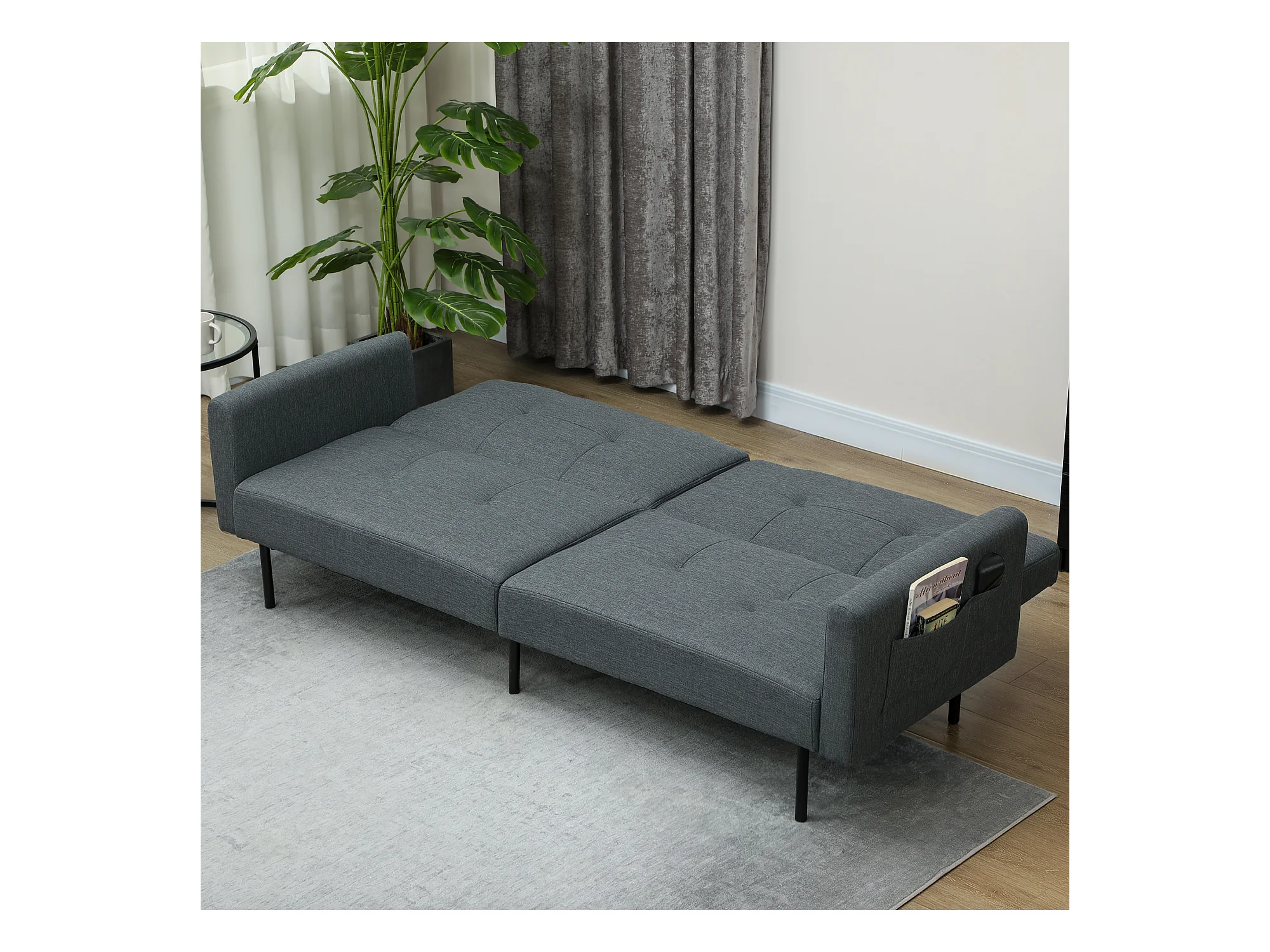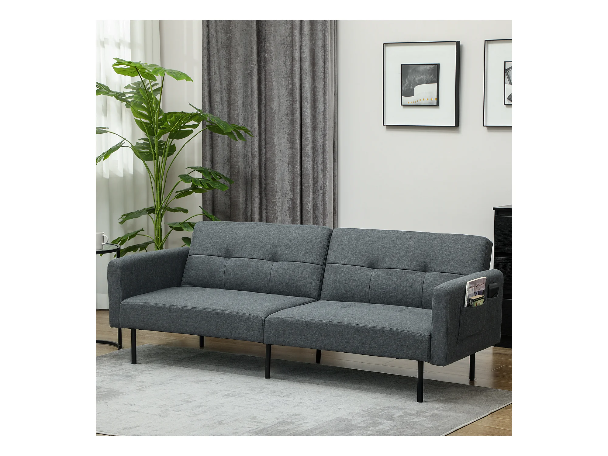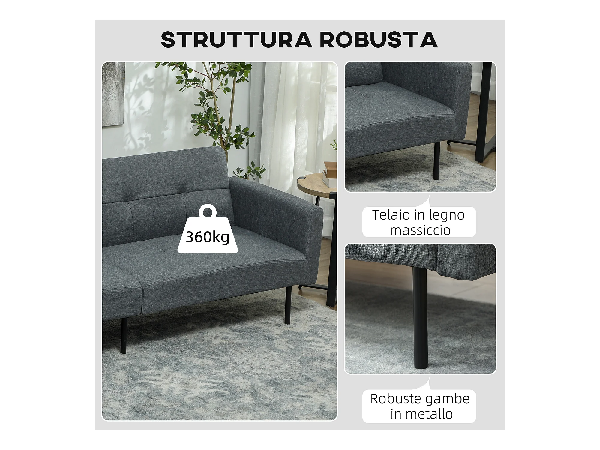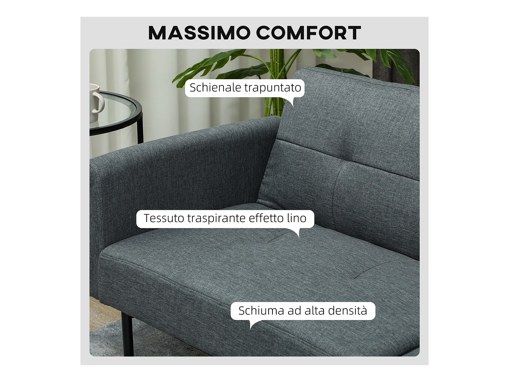 Divano Letto Effetto Lino con schienale regolabile su 3 livelli grigio
