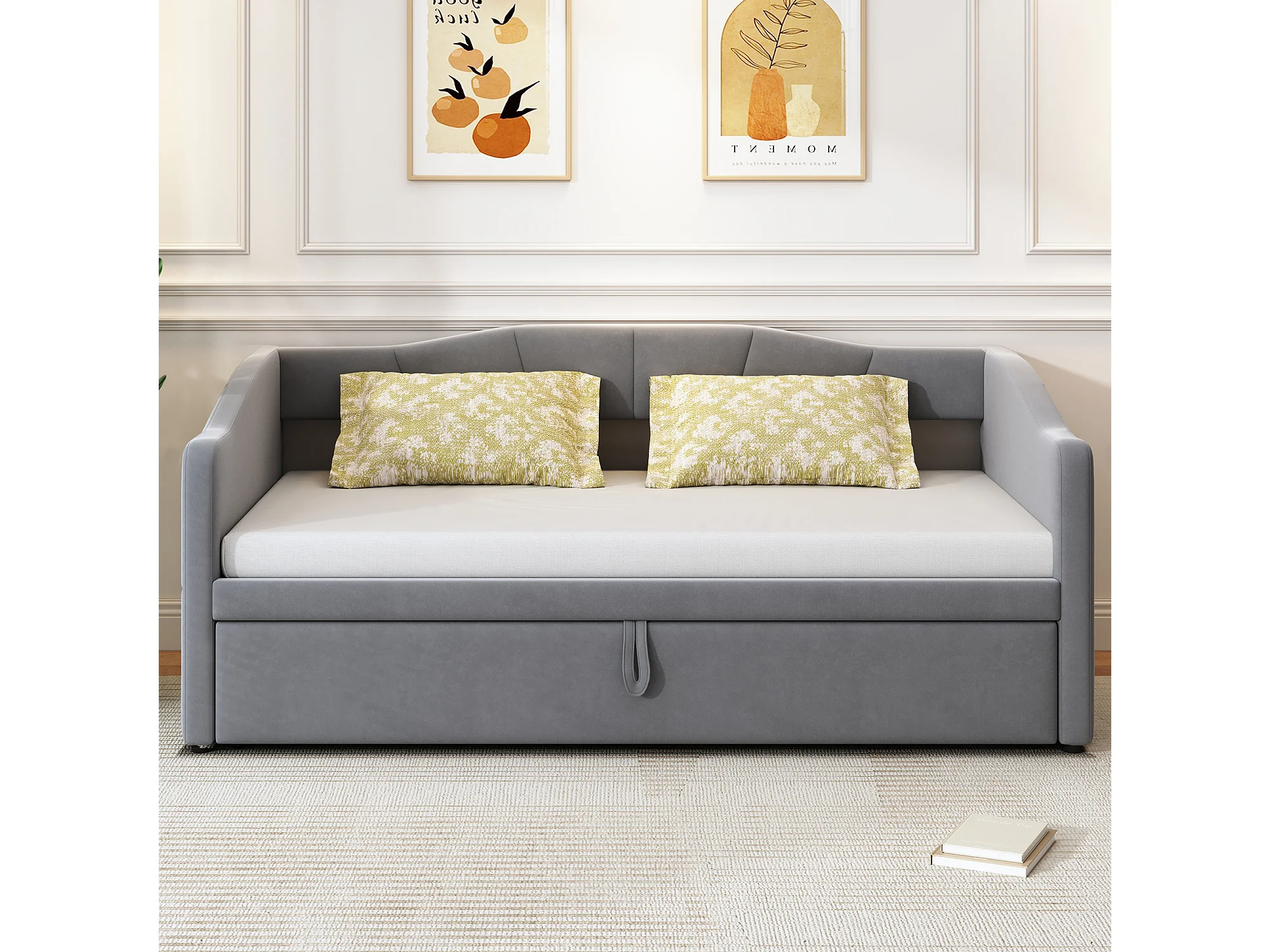 Divano letto estensibile 90/180x200cm grigio con cassetti e rete a doghe, letto estraibile – Pratico, salvaspazio e multifunzionale