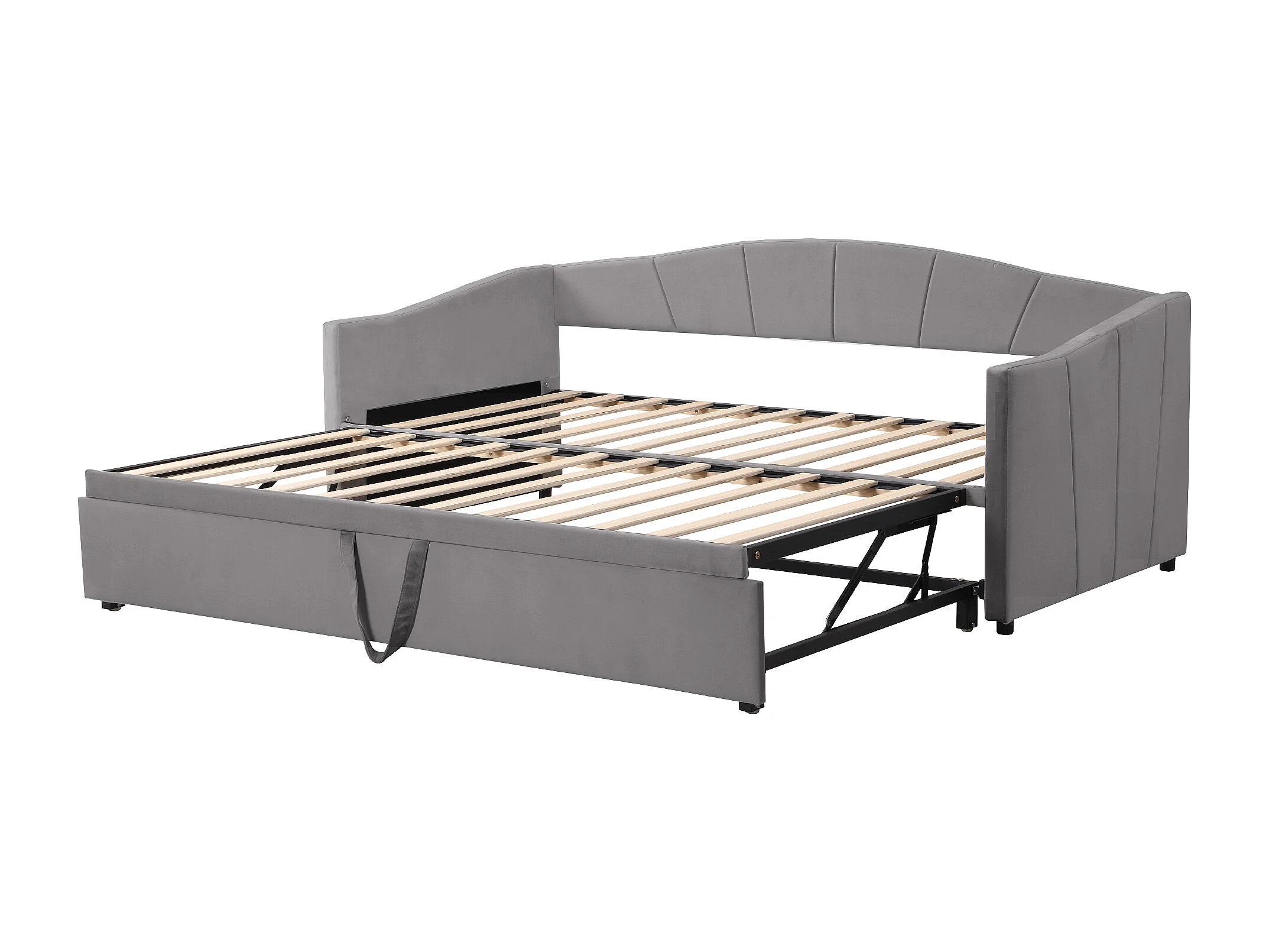Divano letto estensibile 90/200cm e letto 90x190cm grigio con porta USB e vani portaoggetti – Letto multifunzionale pratico e robusto