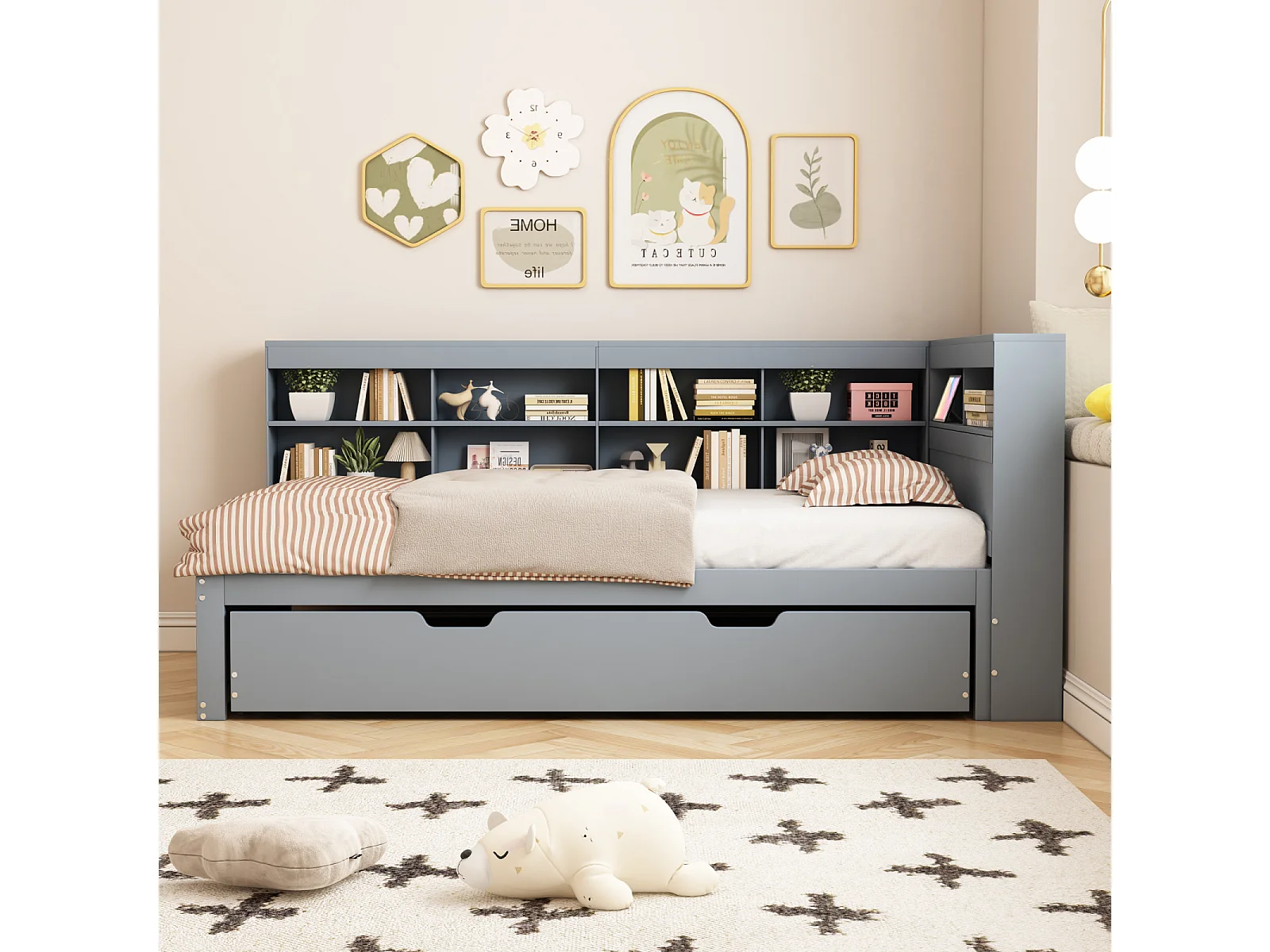 Letto con contenitori e cassetti