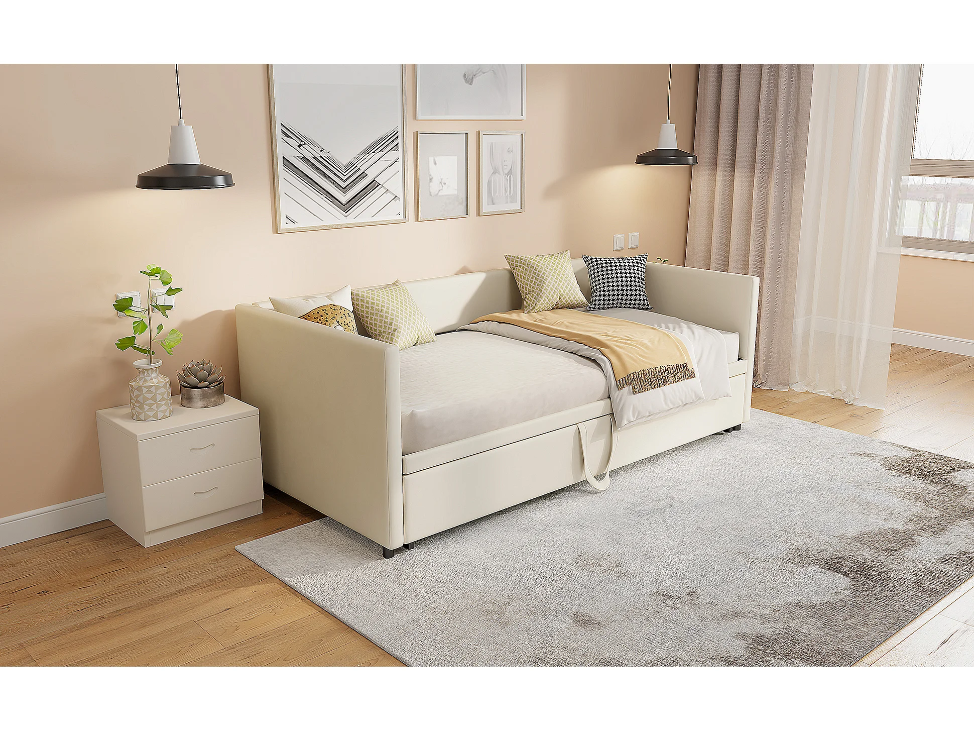 Letto estraibile 90x200cm, divano letto, panca letto 2 posti, reti a doghe, divano letto trasformabile in stile moderno - Beige