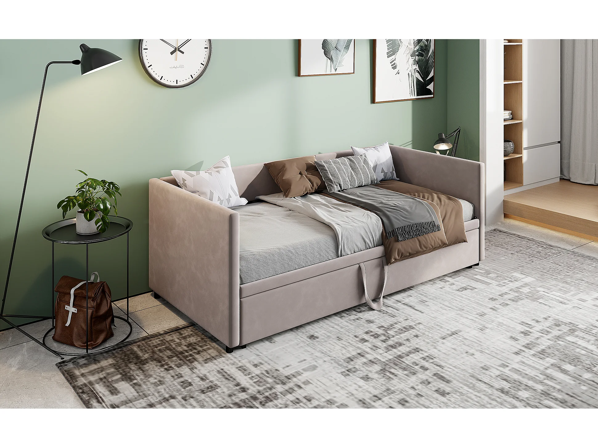 Divano letto multifunzionale 90x200cm in velluto grigio con 2 cassetti contenitori e rete a doghe – Letto comodo, pratico e salvaspazio