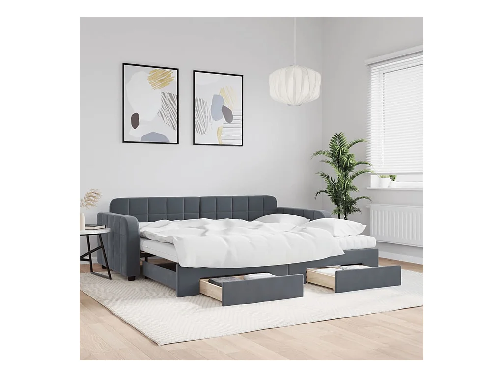 Divano Letto Estraibile Cassetti Grigio Scuro 90x200cm Velluto