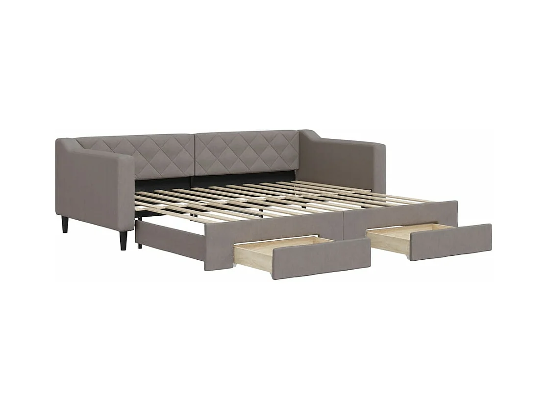 Divano Letto Estraibile con Cassetti Tortora 90x200 cm Tessuto