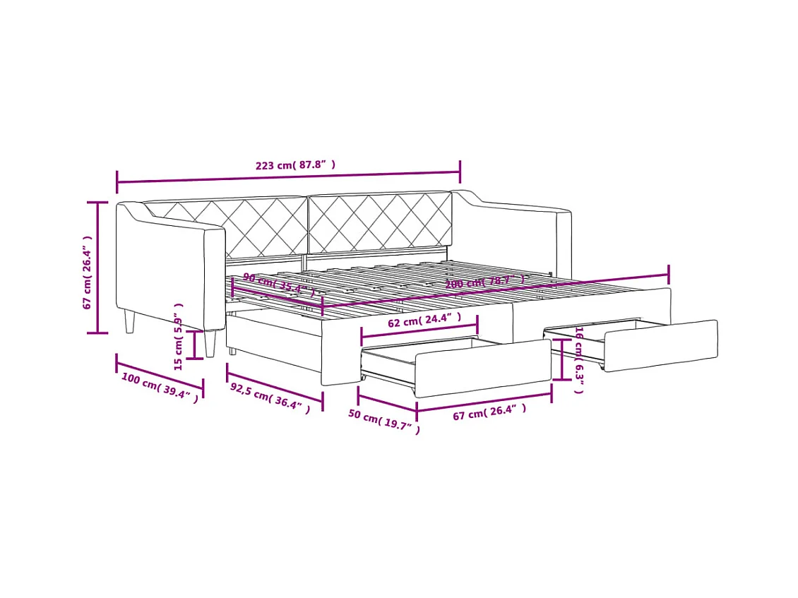 Divano Letto Estraibile Cassetti Grigio Scuro 90x200cm Tessuto