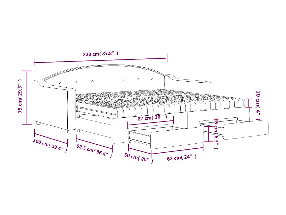 Divano Letto Estraibile con Cassetti Tortora 90x200 cm Tessuto
