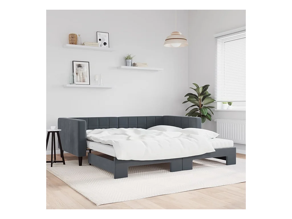 Divano Letto Estraibile Materassi Grigio Scuro 100x200 Velluto