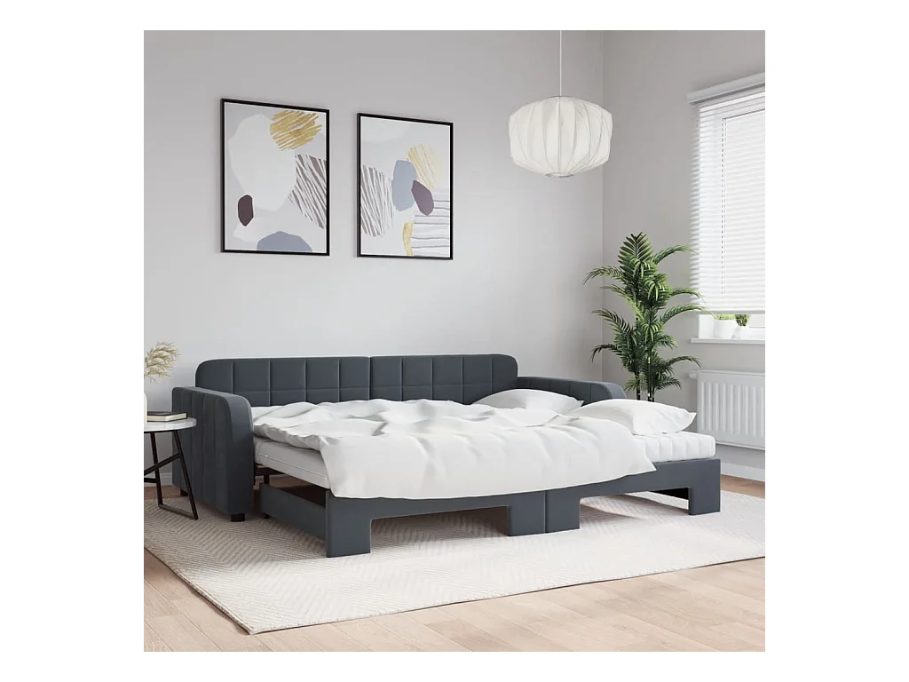 Divano Letto Estraibile Materassi Grigio Scuro 90x200cm Velluto