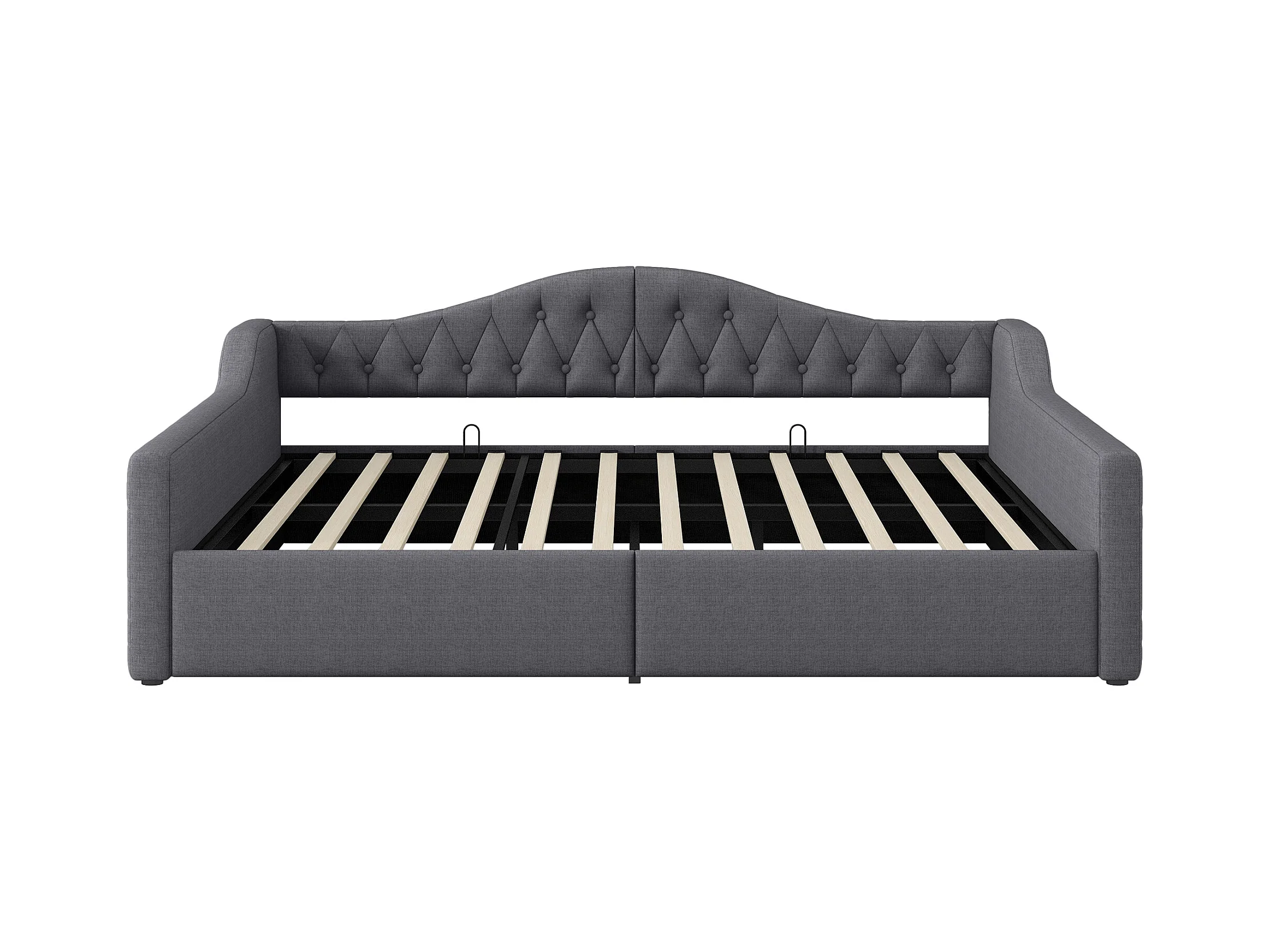 Letto estraibile con contenitore - 140 x 200 cm + 90 x 190 cm - tessuto in lino - testiera regolabile - rete a doghe - colore grigio