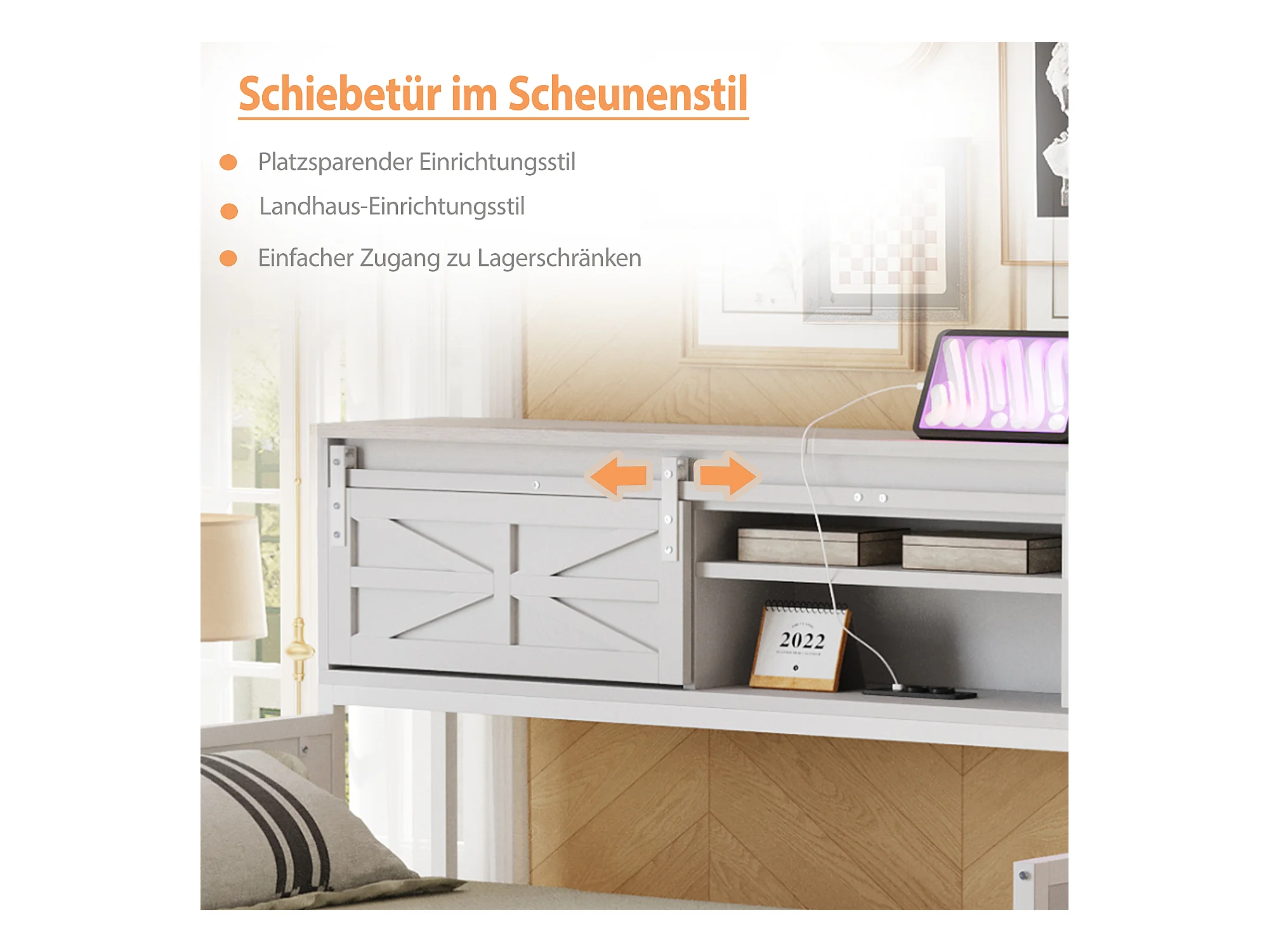 Letto estraibile 90x200cm+90x190cm, Divano letto con testiera contenitore e porta di ricarica USB, bianco