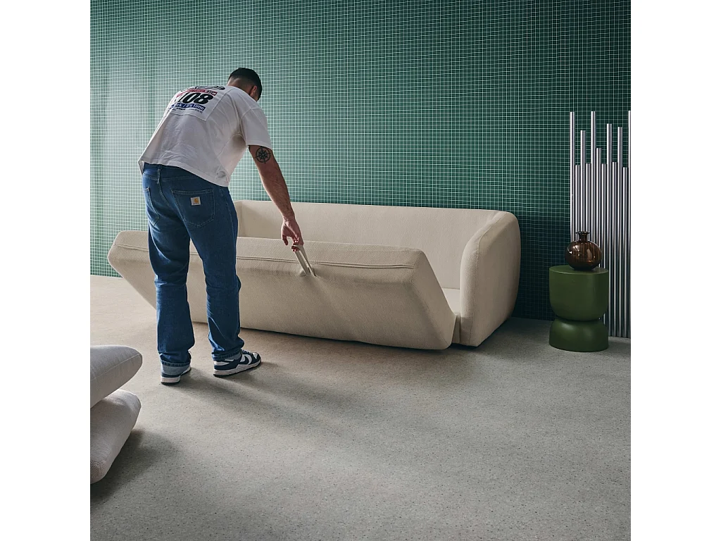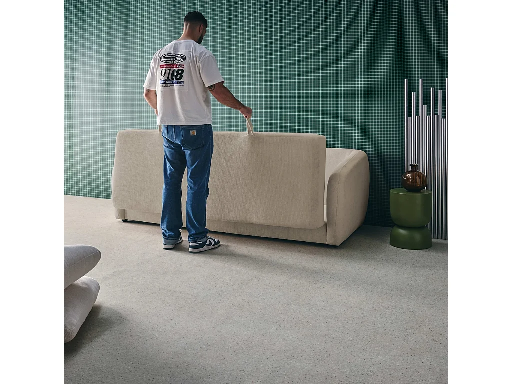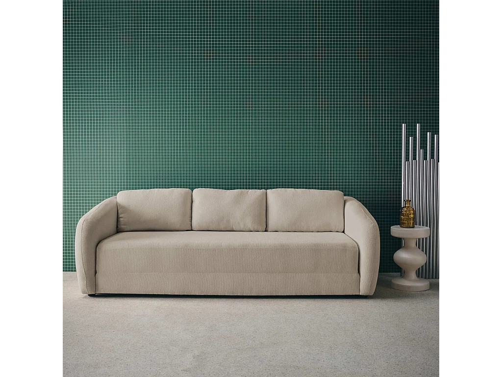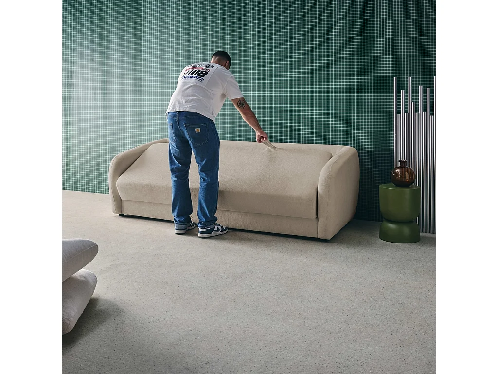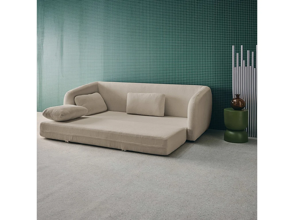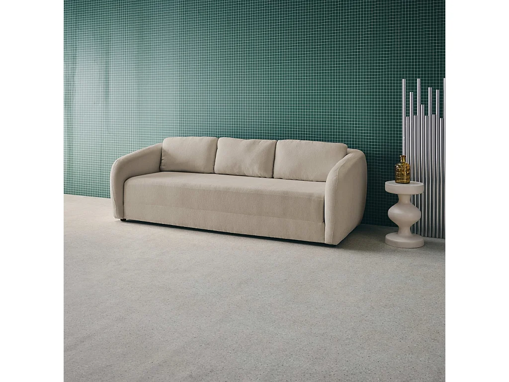 Divano letto in tessuto ciniglia, 3 posti, grigio chiaro