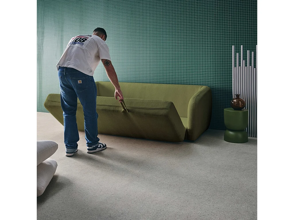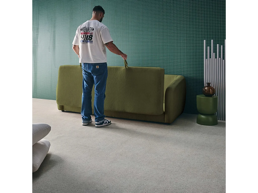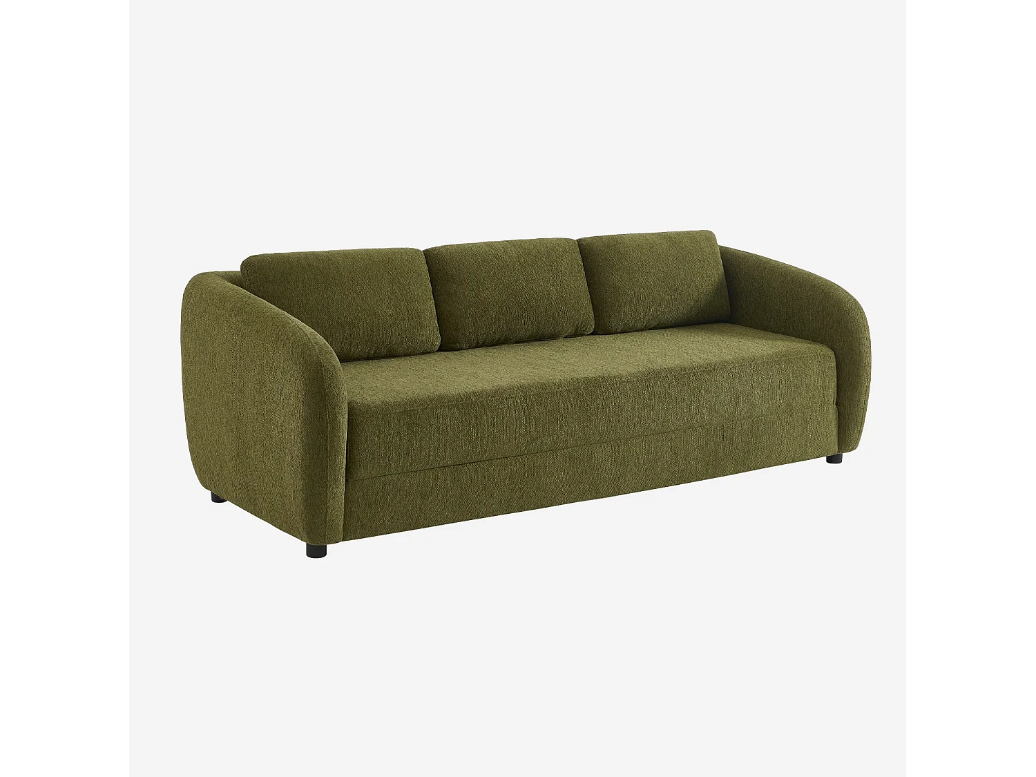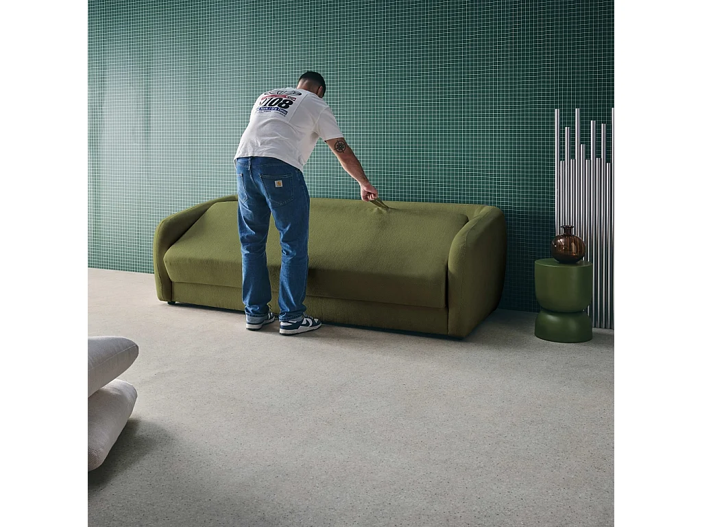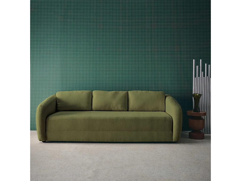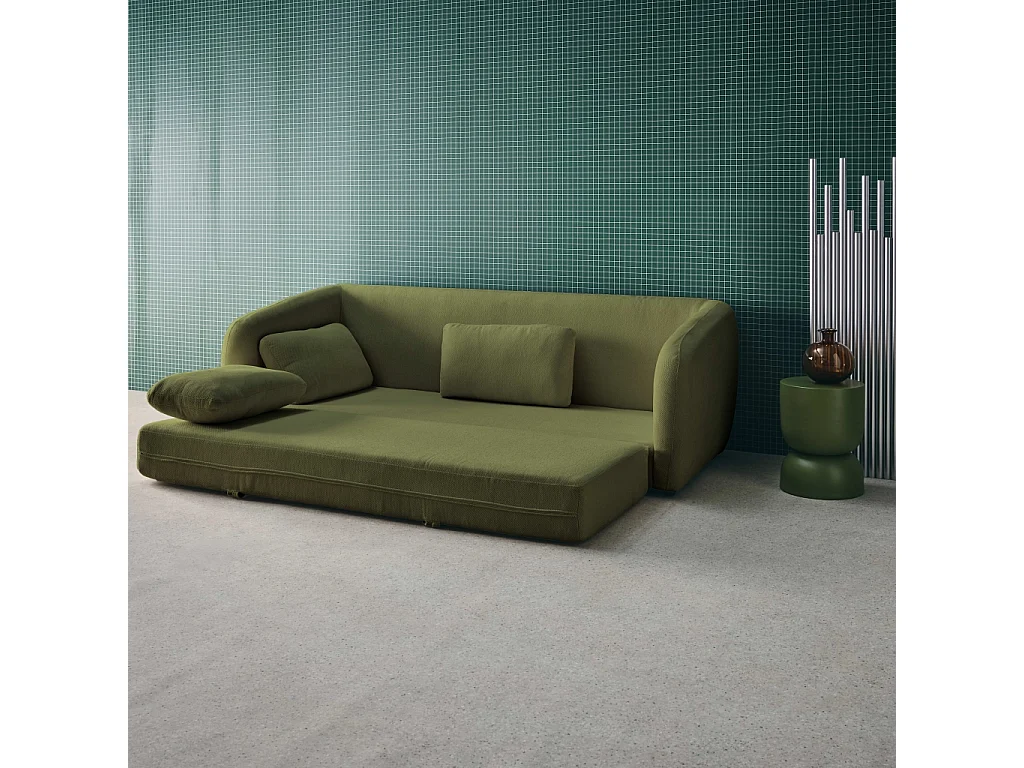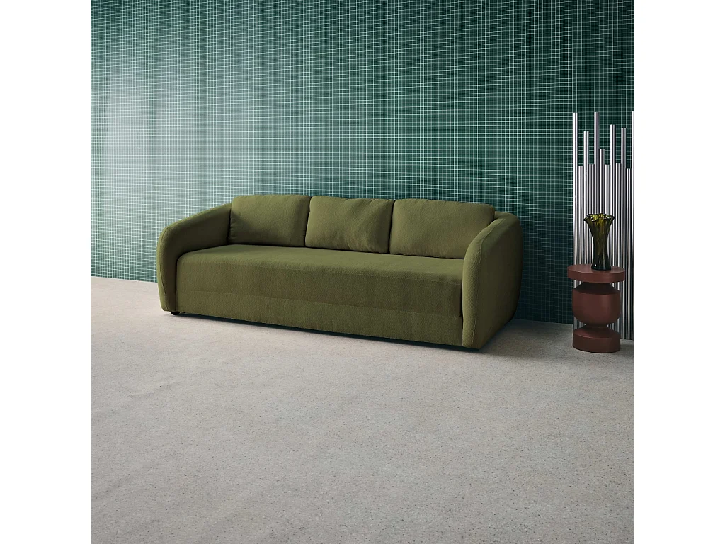 Divano letto in tessuto ciniglia, 3 posti, verde kaki