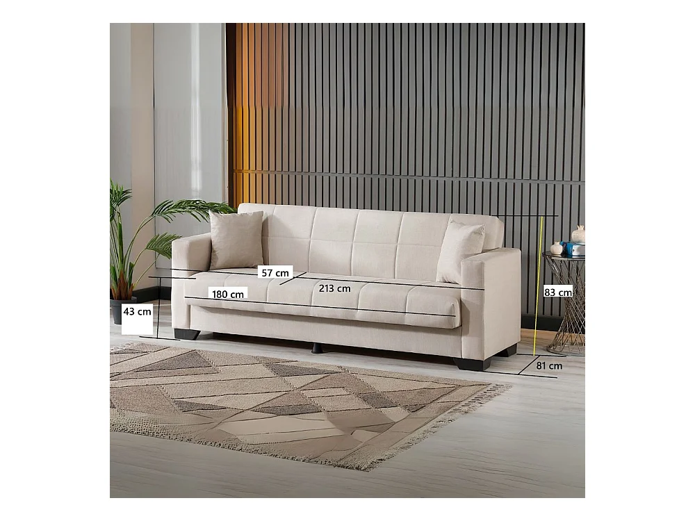 Divano letto Moon con contenitore colore grigio 213x81x83H