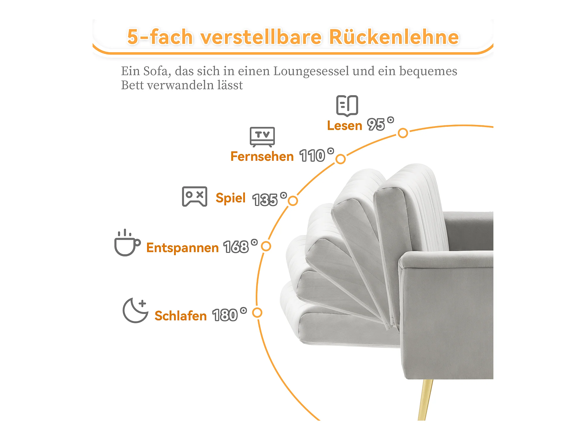 Divano Letto Effetto Lino con schienale regolabile su 3 livelli grigio