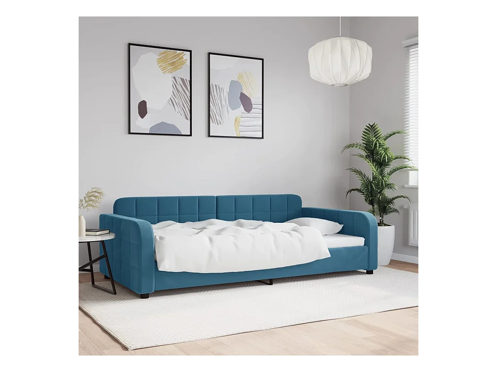 Divano letto con materasso in velluto blu 100x200 cm