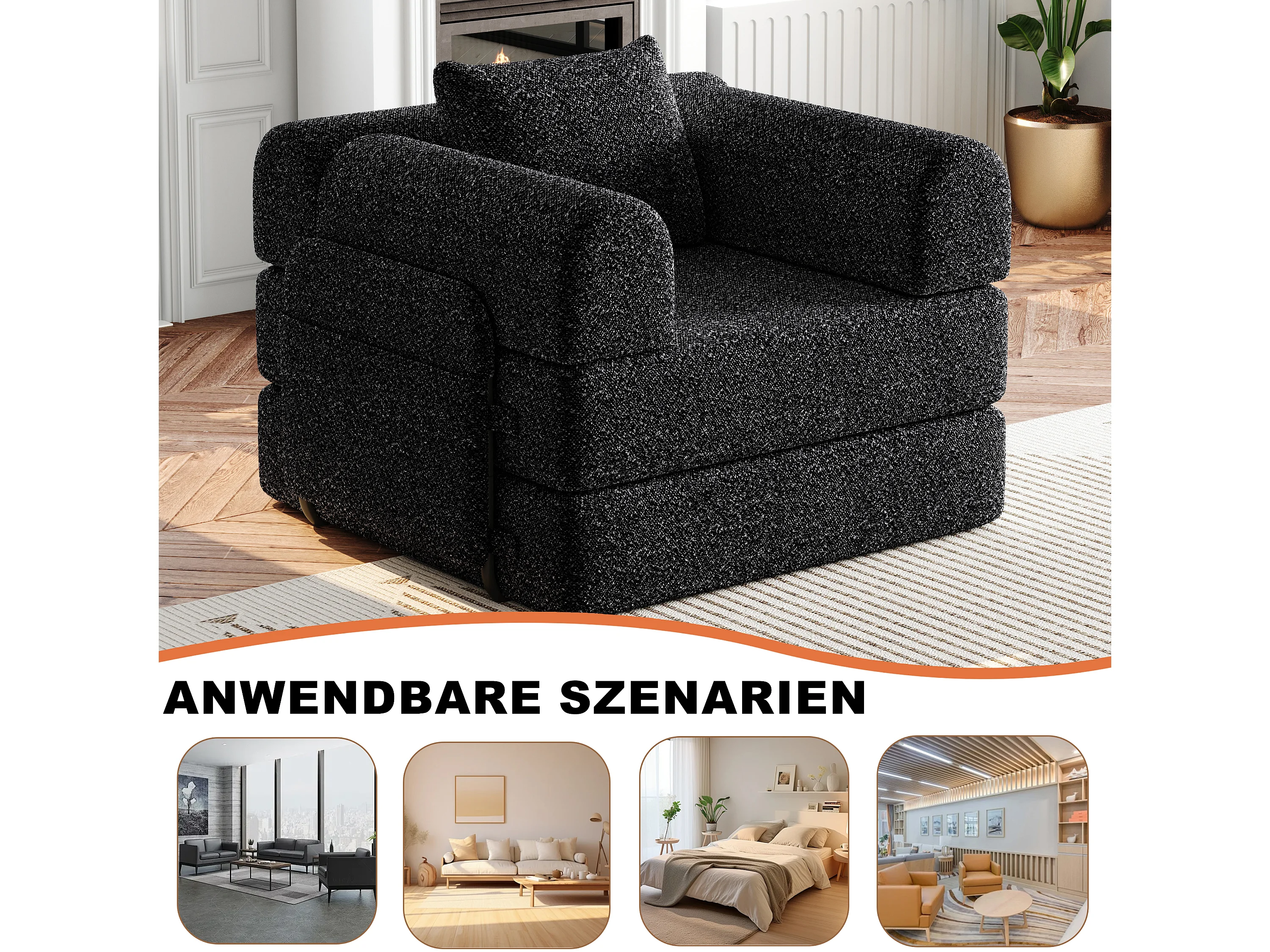 Divano letto trasformabile - Posto singolo - Tessuto ciniglia nero