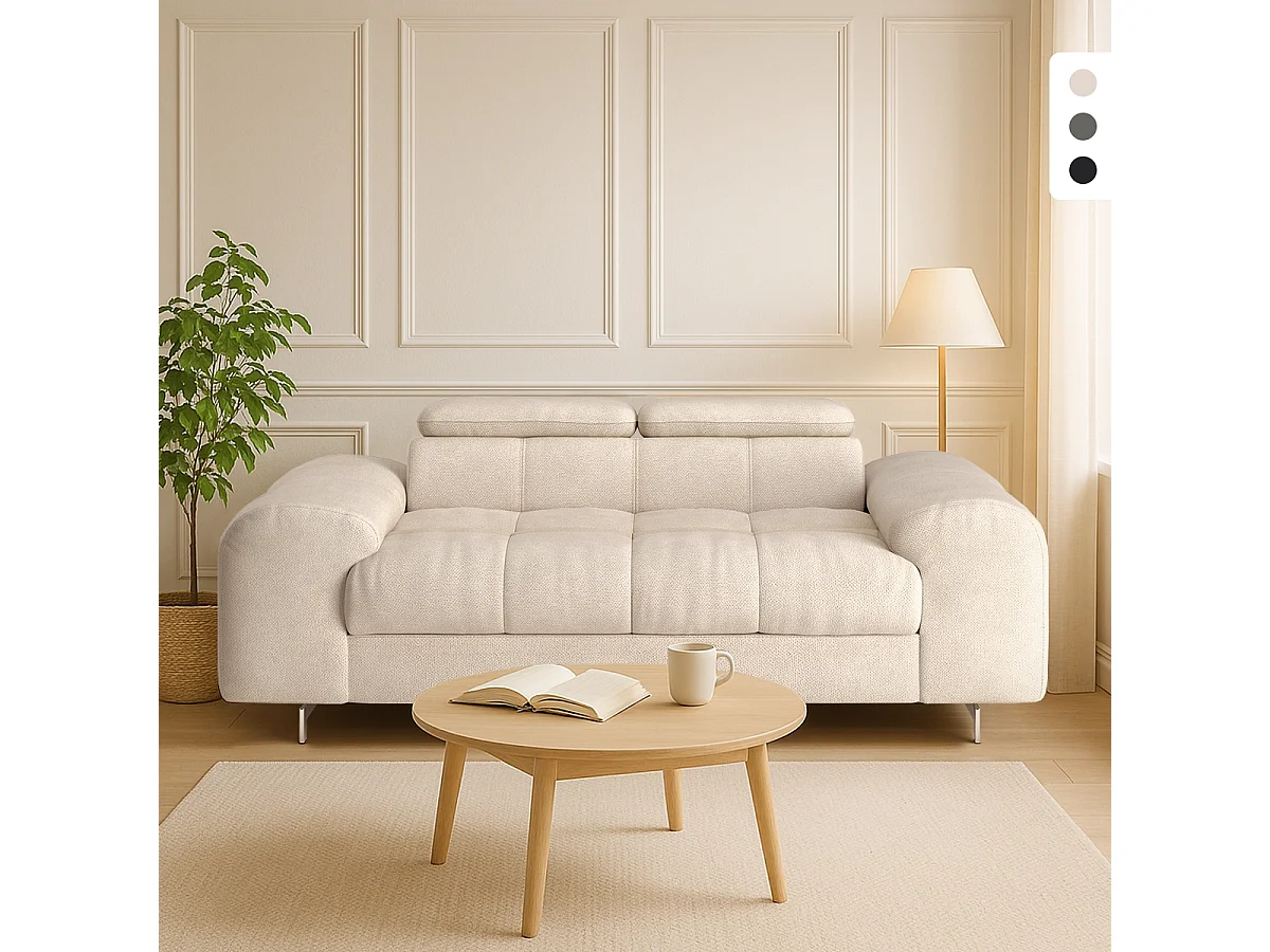Divano moderno 2 posti in tessuto con poggiatesta regolabile Kuran - Beige
