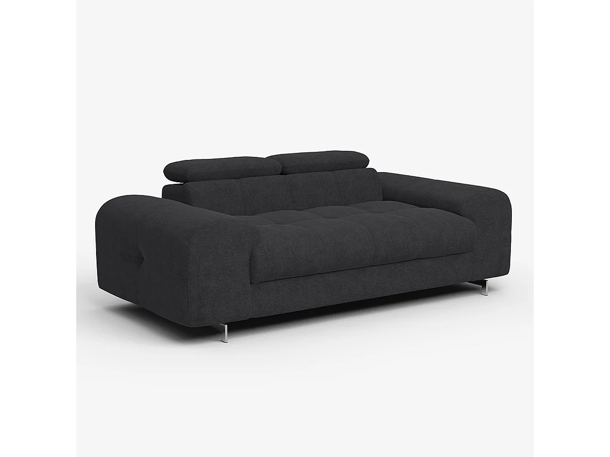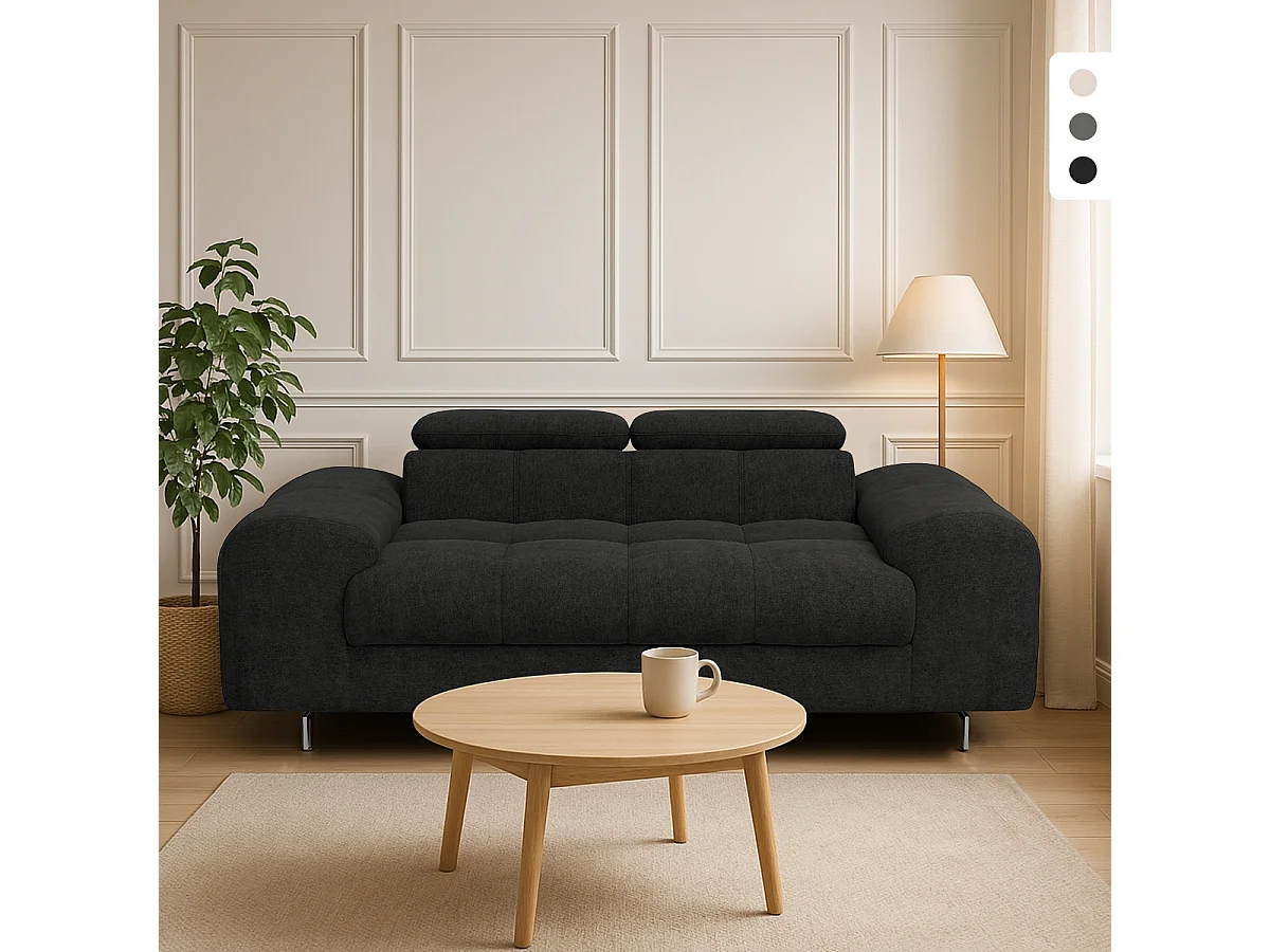 Divano moderno 2 posti in tessuto con poggiatesta regolabile Kuran - Nero