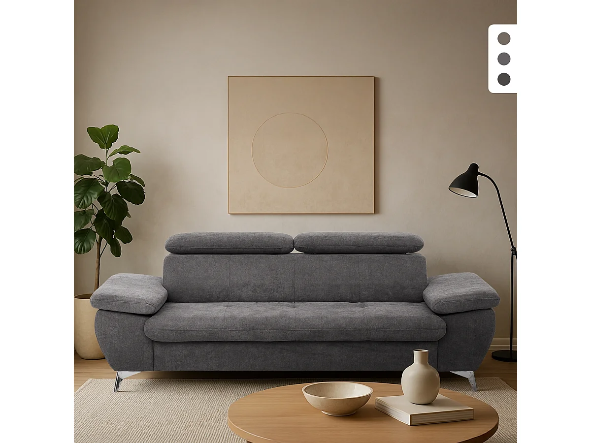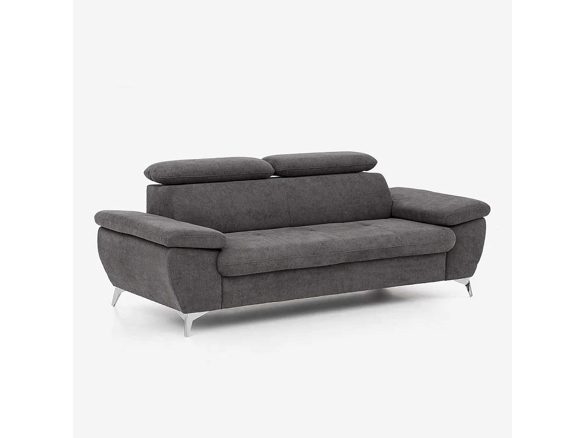 Divano 3 posti design moderno con poggiatesta regolabile Rouna - Grigio Scuro