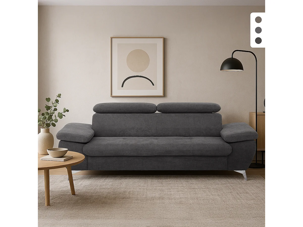 Divano moderno 3 posti in tessuto con schienale e braccioli regolabili Zana - Nero