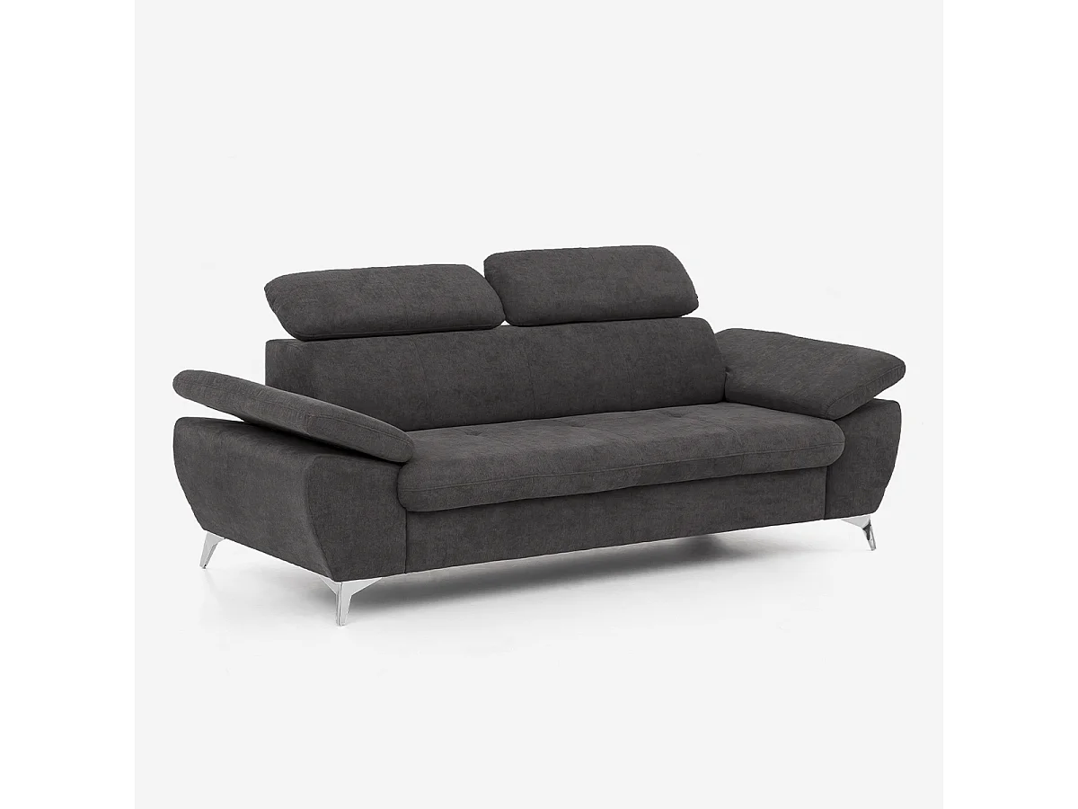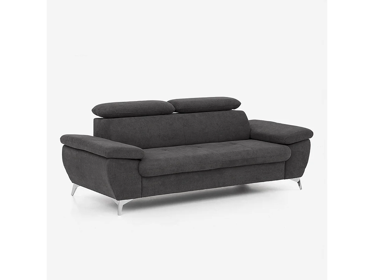 Divano 3 posti moderno di design con poggiatesta regolabile Kira - Nero
