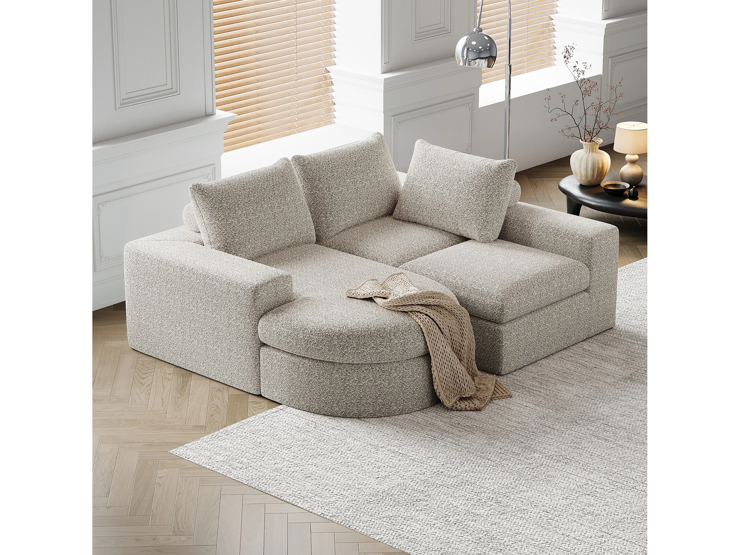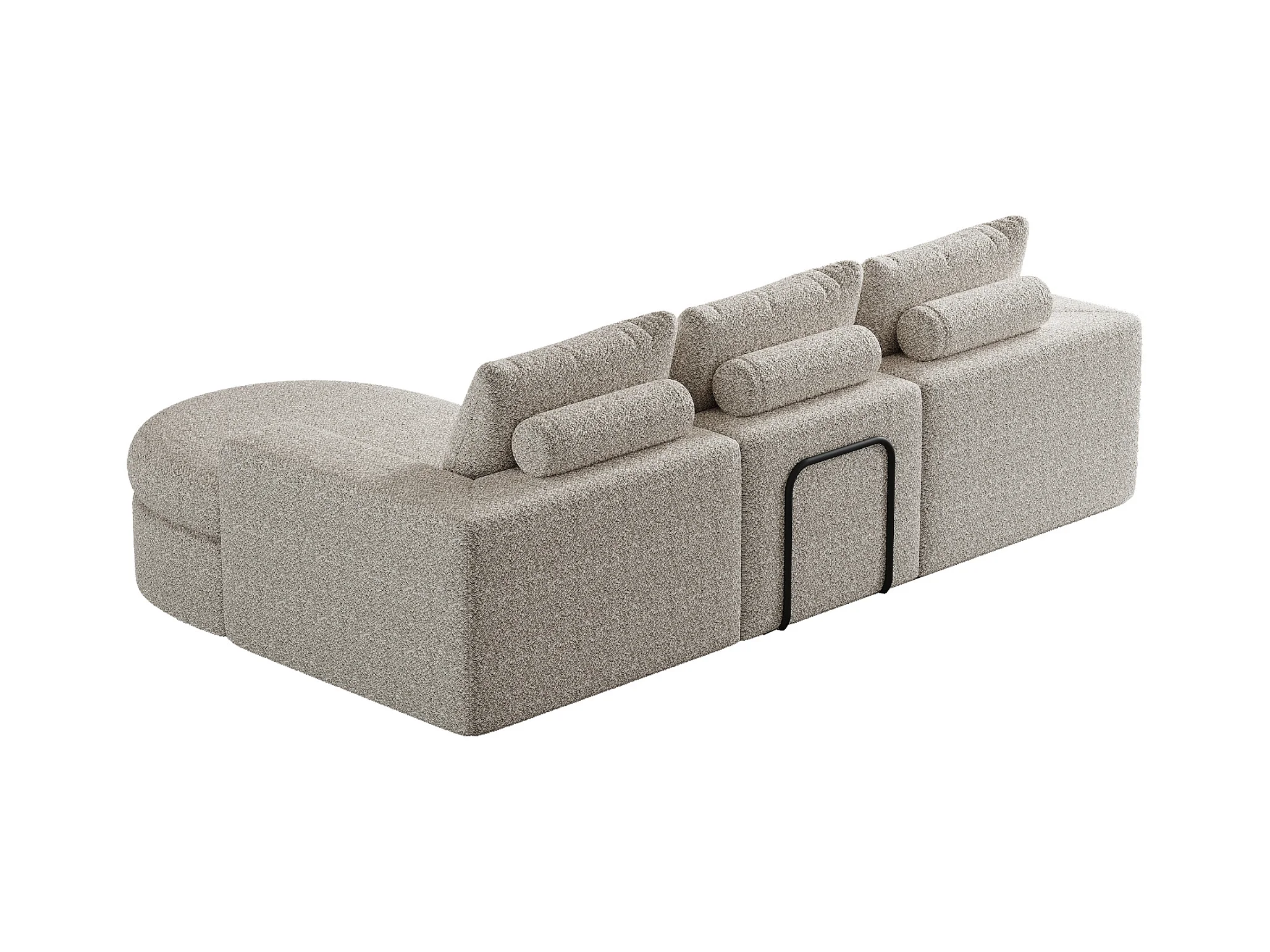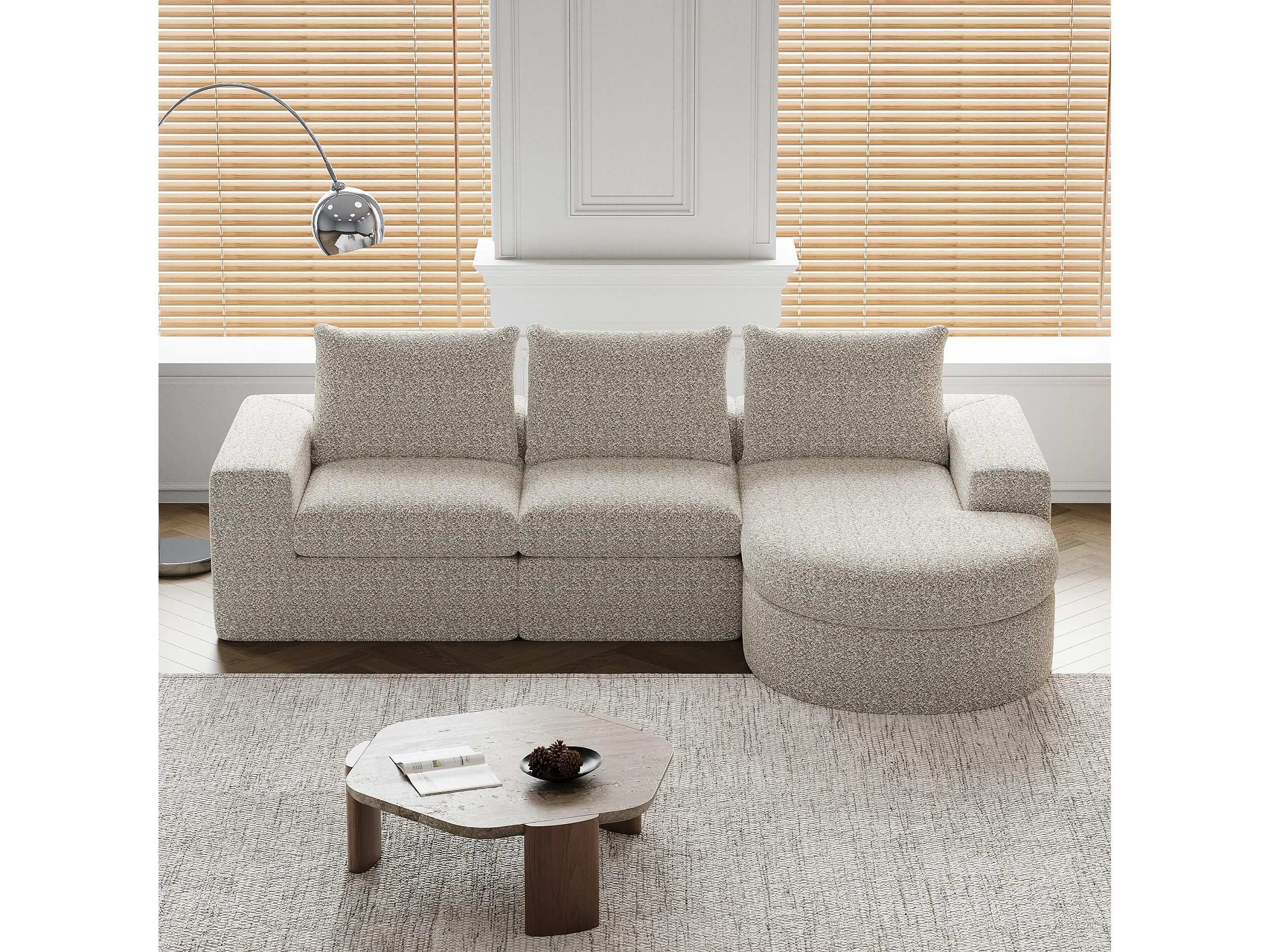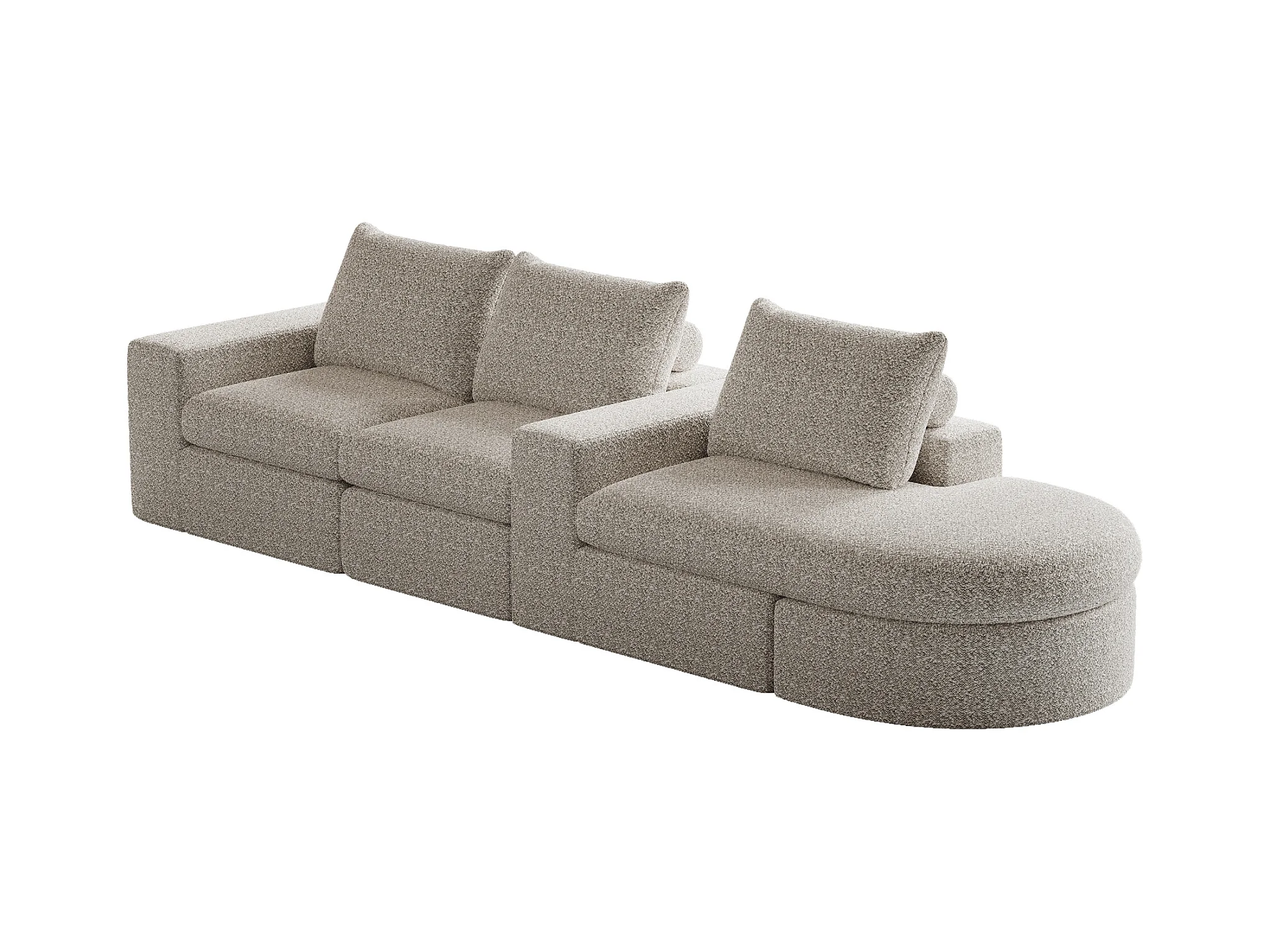 Divano modulare 3 posti in tessuto ciniglia beige con chaise longue arrotondata - Schienale imbottito
