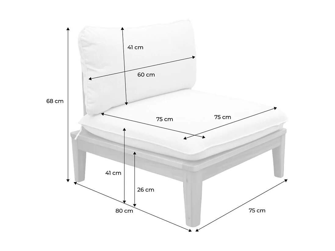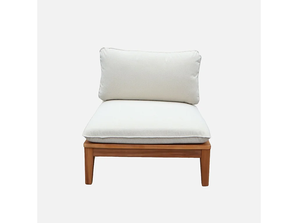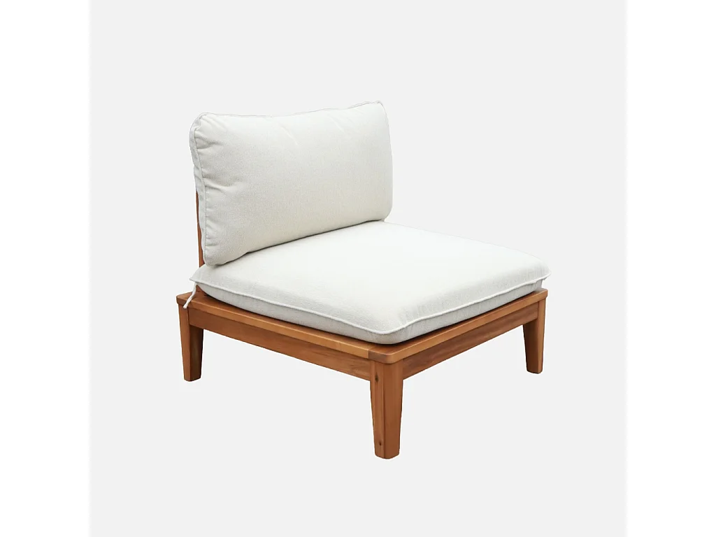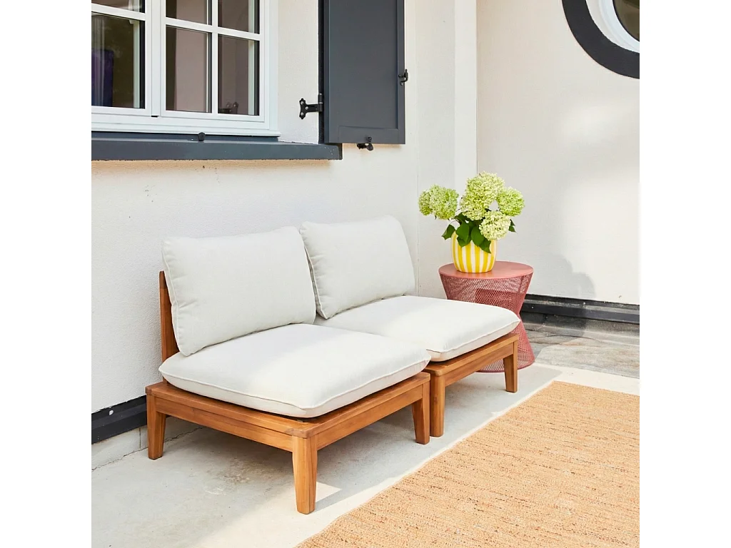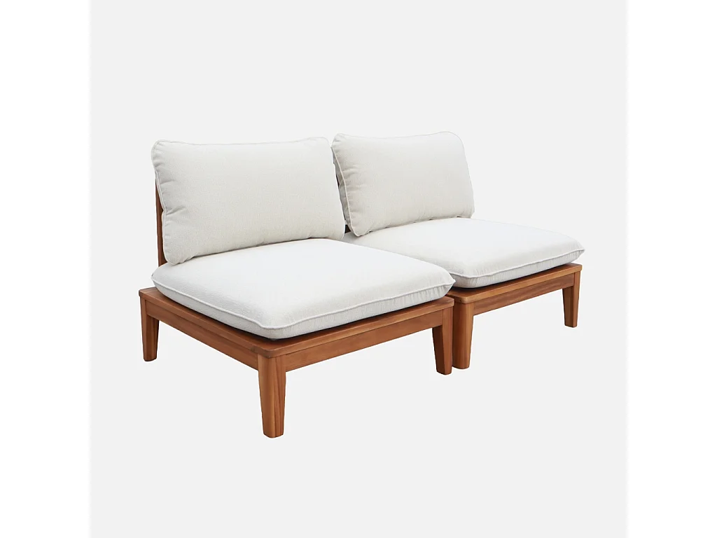 Divano modulare da giardino in legno di acacia e bouclé, 2 posti,